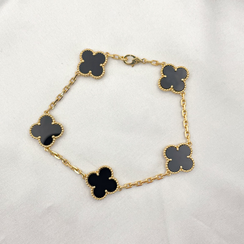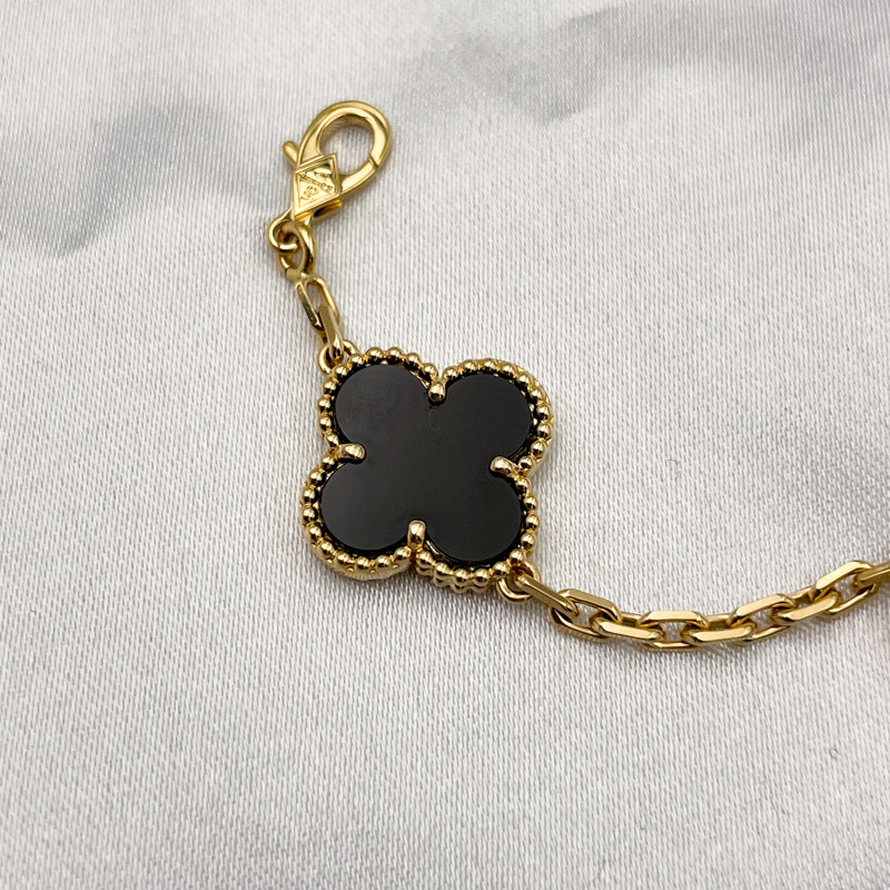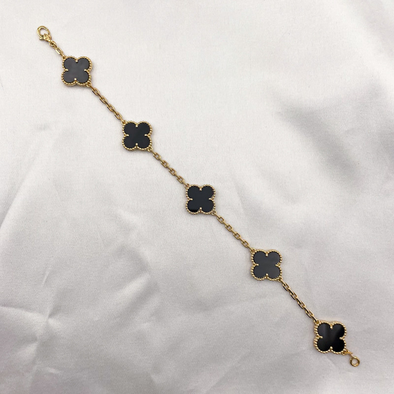 【自营】中古99新梵克雅宝Alhambra系列四叶幸运黑色缟玛瑙手链