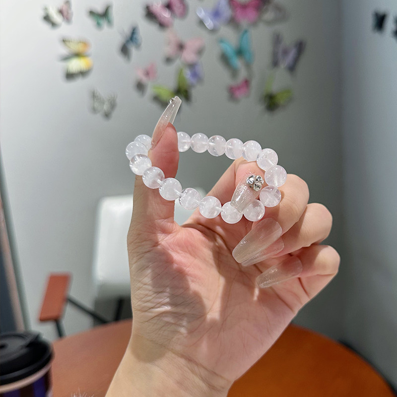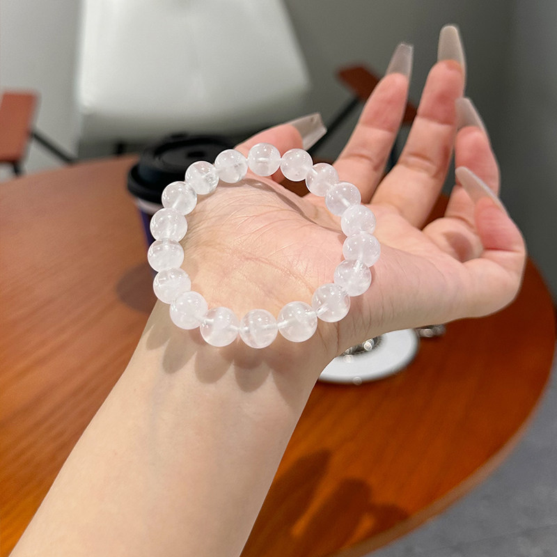 巴西天然白幽灵手链女聚宝盆千层异象珠子白色白水晶手串生日礼物