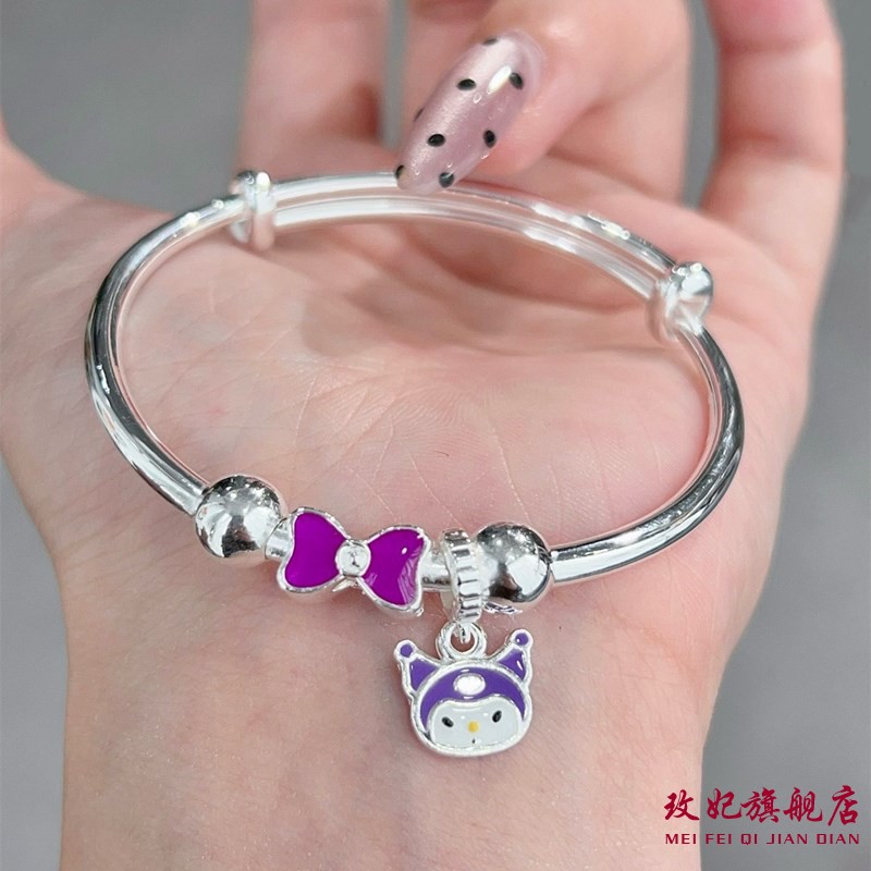 玫妃蝴蝶结库洛米纯银手镯足银9999女宝宝中大童学生儿童生日礼物