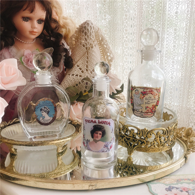 香水瓶香薰瓶分装瓶法国老标签玻璃瓶复古摆件玫瑰拍照背景艺术