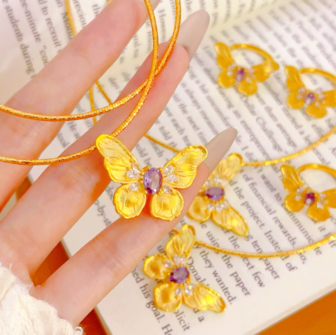 复古贵气璀璨星河蝴蝶戒指小众精致轻奢百搭时尚甜美风指环18k金