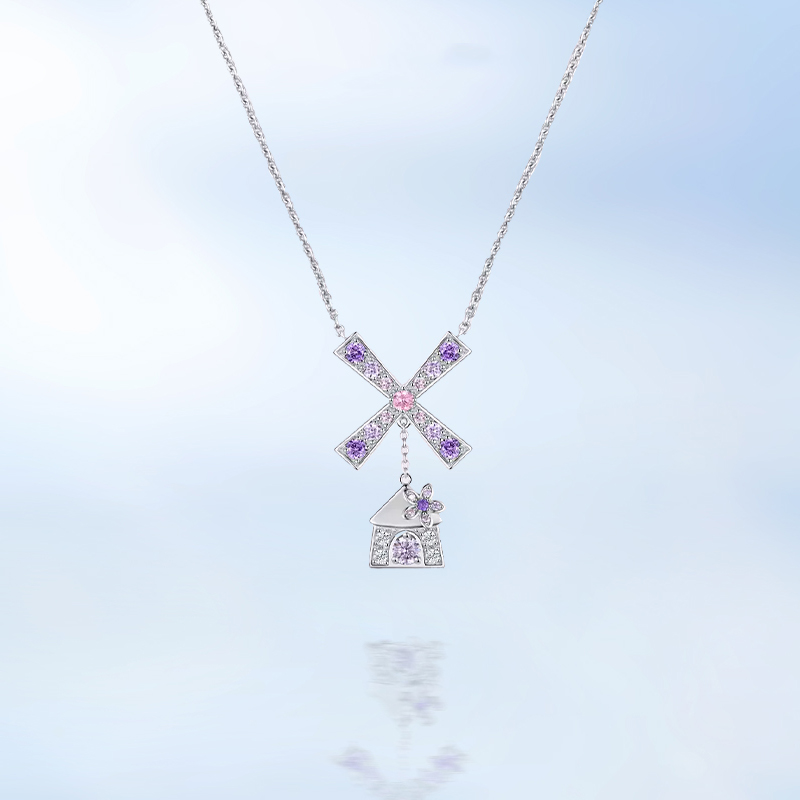 明星孟子义同款紫色家园项链925银 原创设计个性简约轻奢时尚百搭