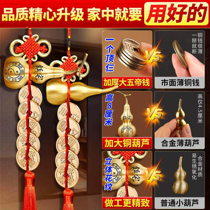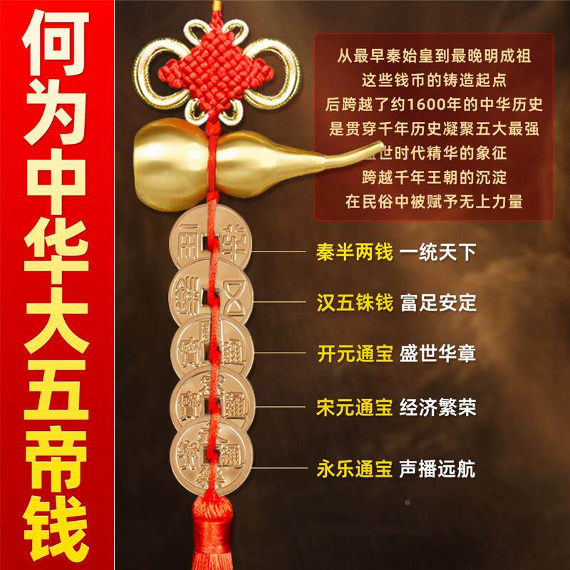 中华大五帝钱门对门挂件纯卧铜口葫芦真品入户国门室对开HTLMDWDQ