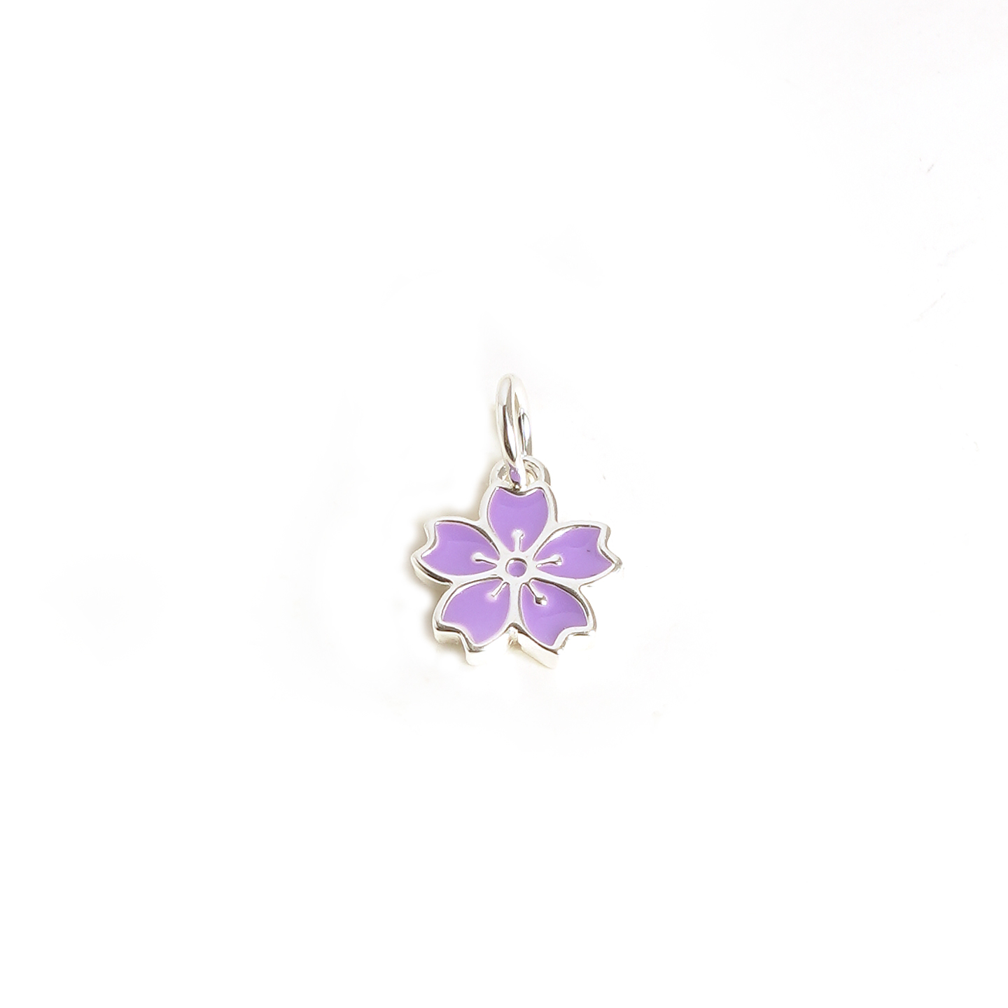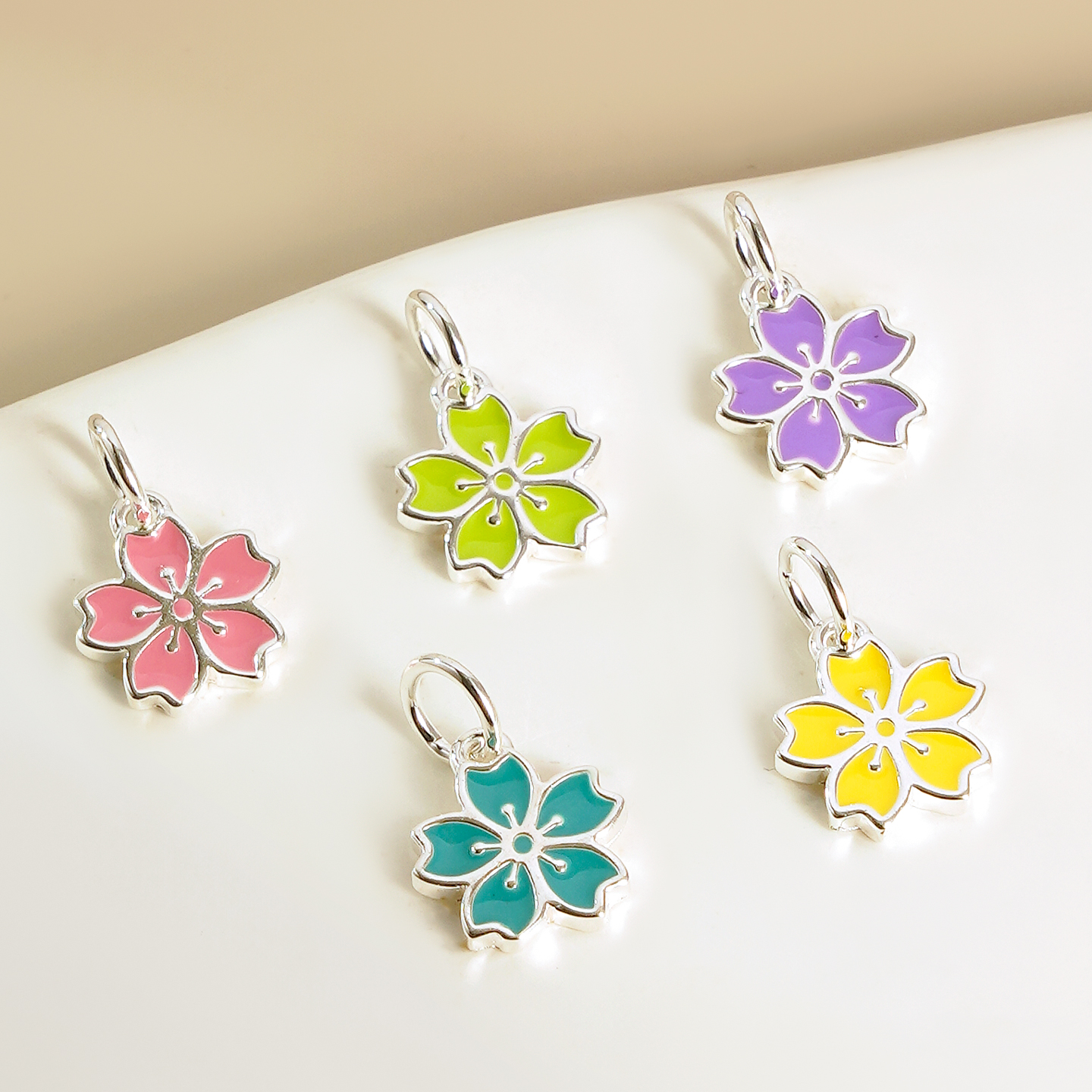 S925纯银彩色滴油款樱花吊坠DIY手串配件材料粉色黄色花朵挂坠