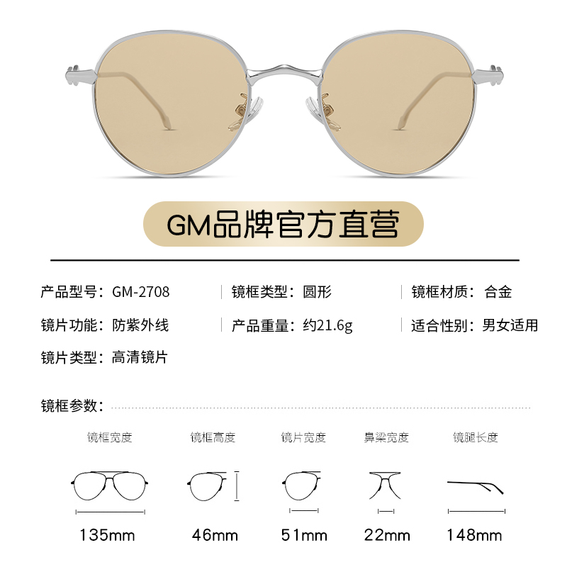 【GM正品】2025新款高级感墨镜女款atomic超轻浅色小框太阳眼镜男