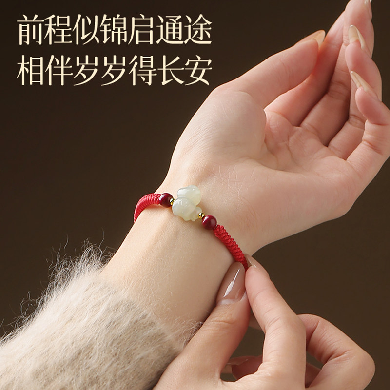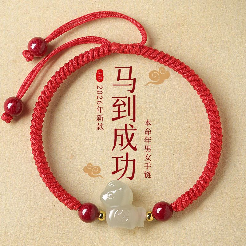 2026马年本命年红绳手链男女和田玉生肖小马红色手绳属马新年礼物