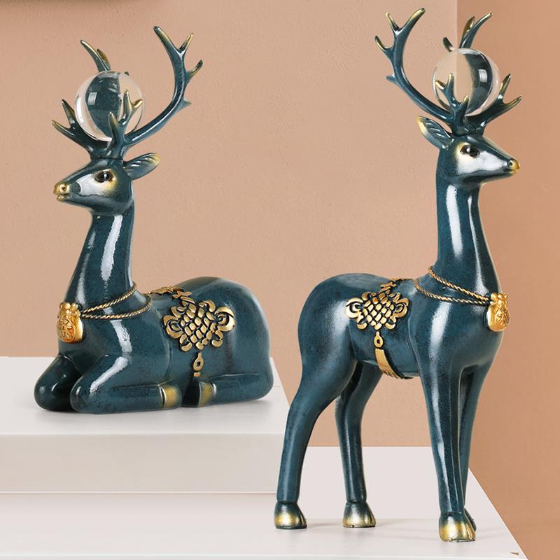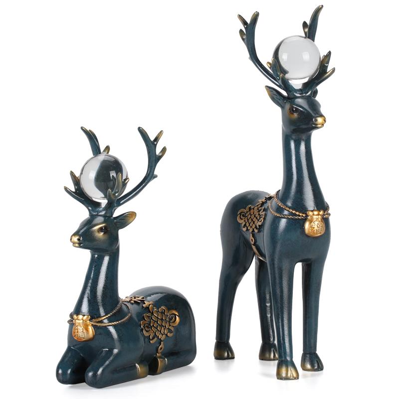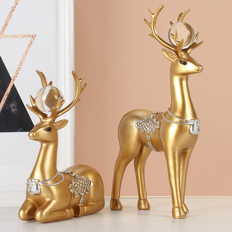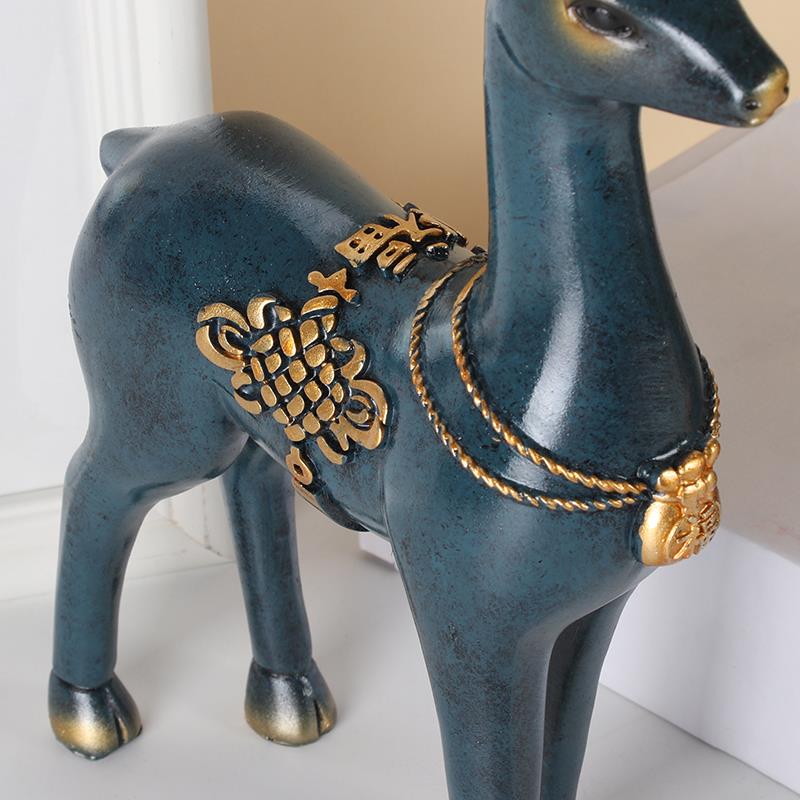 欧式复古招财麋鹿摆件 创意乔迁房间酒柜客厅家居装饰品结婚礼物