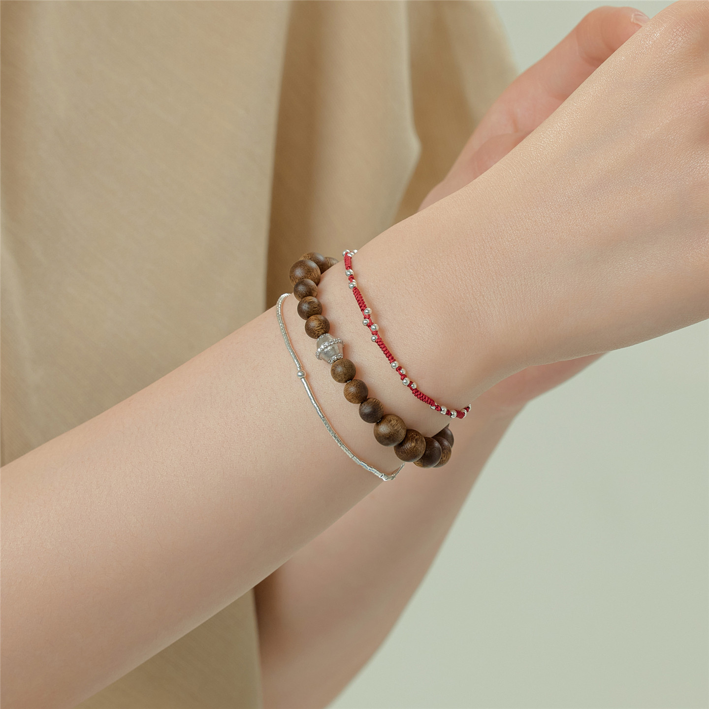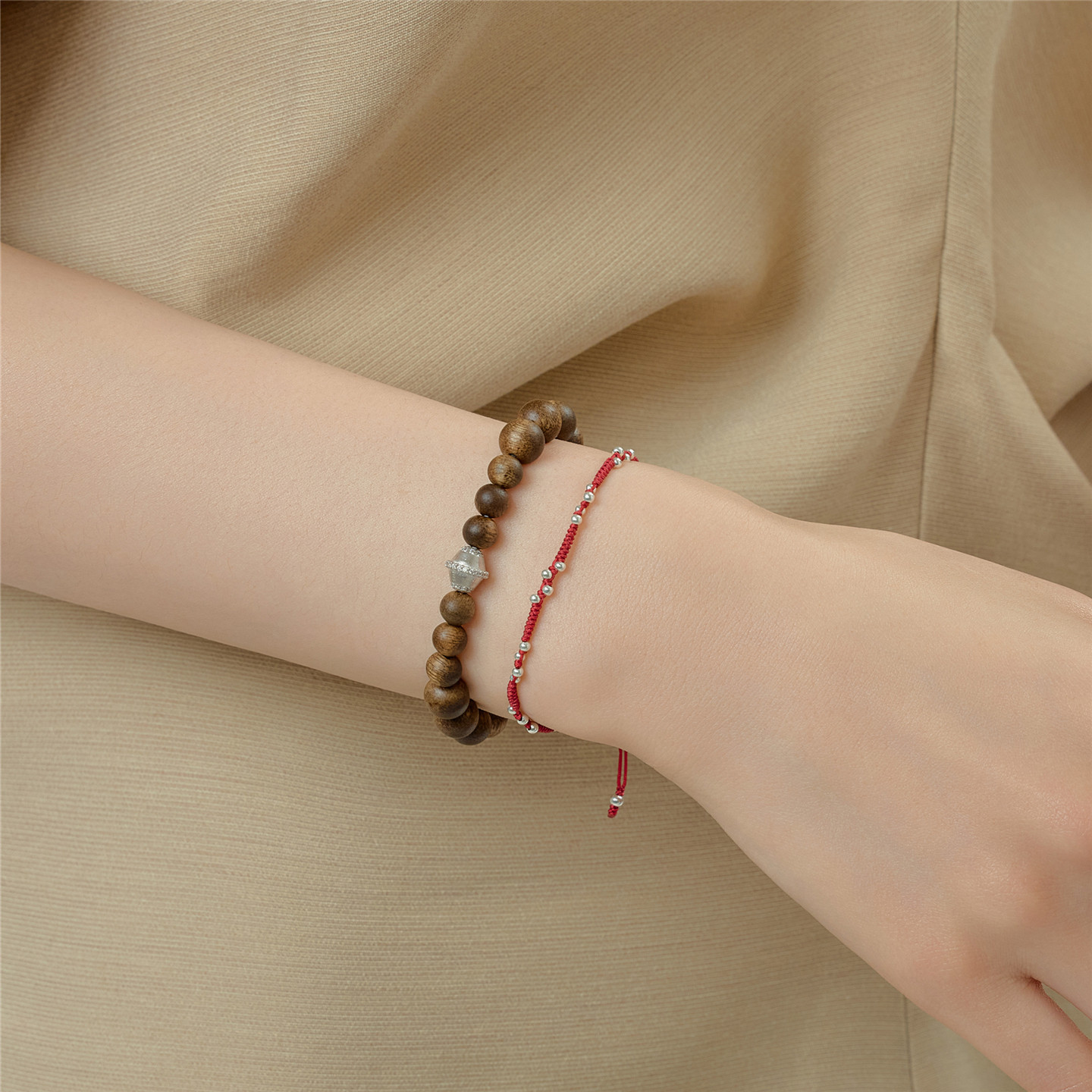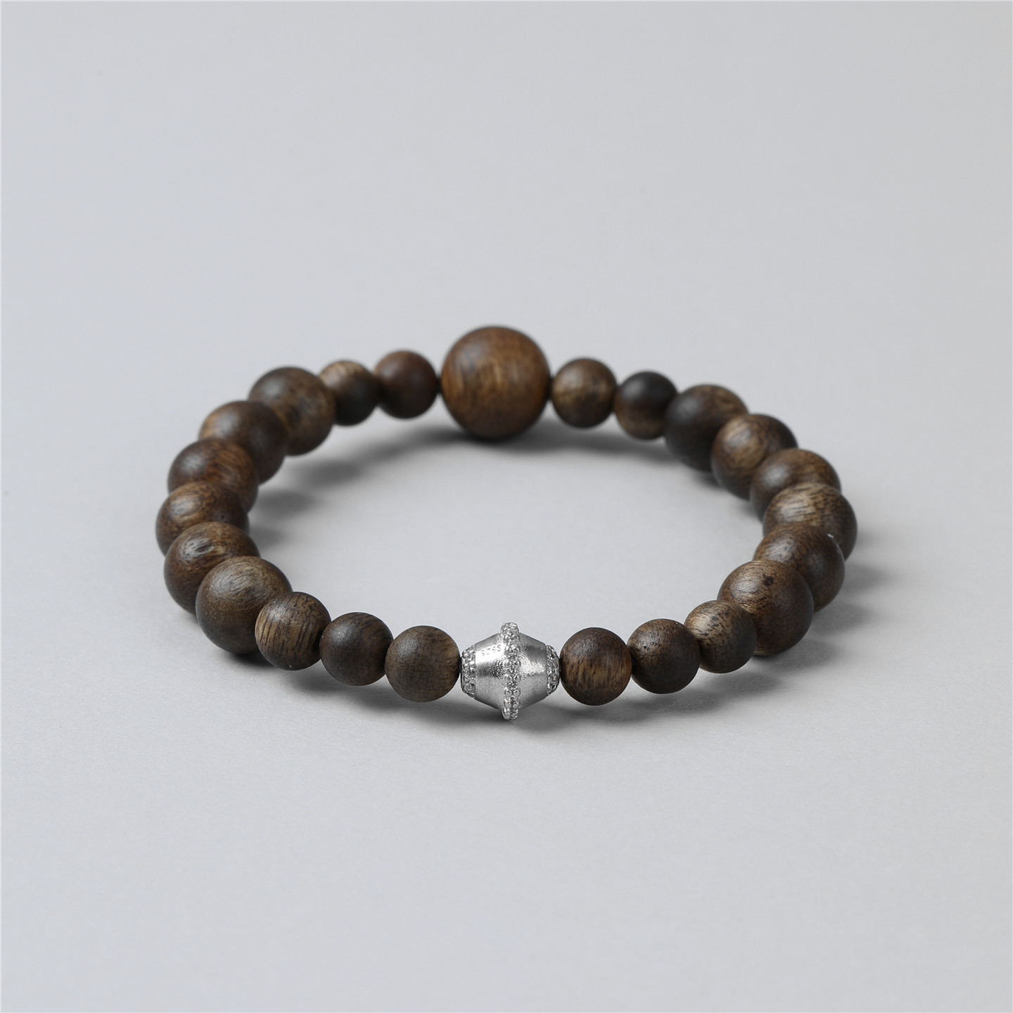 梵灵原创设计师天然奇楠沉香转运珠木银渡手链S925纯银手串新中式