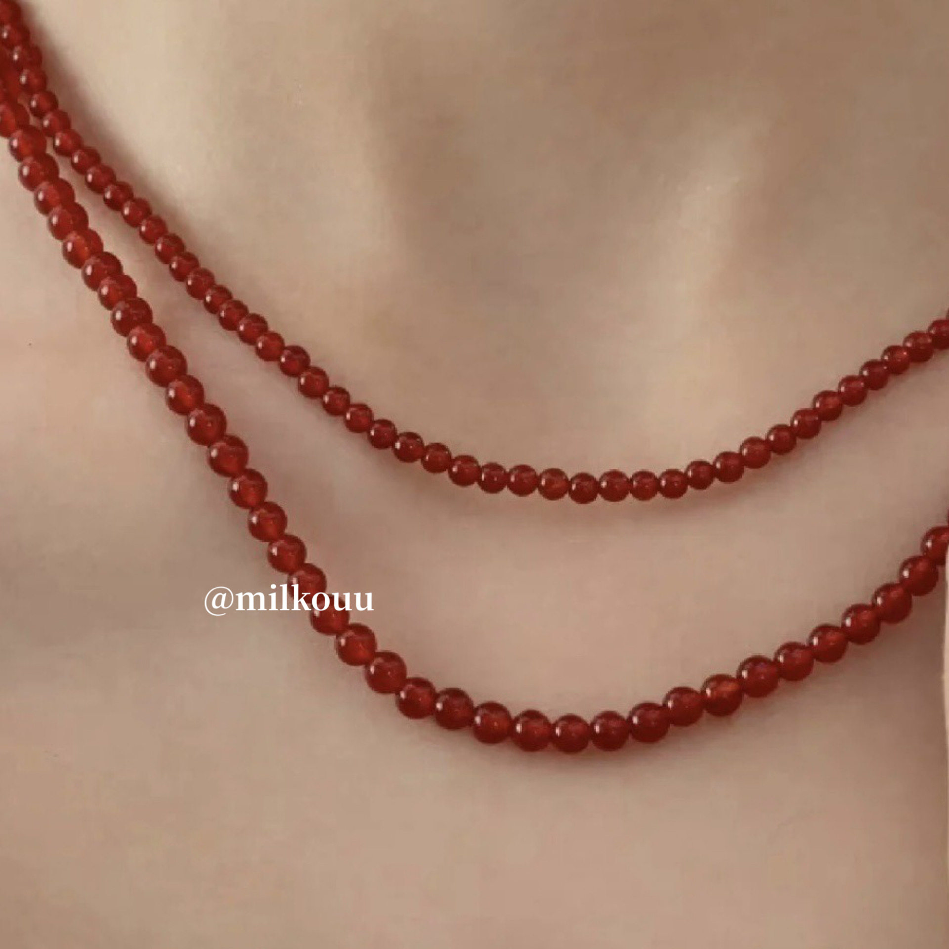 韩国代购 925纯银 ins天然简约冰透红玛瑙串珠显白红色圆珠项链