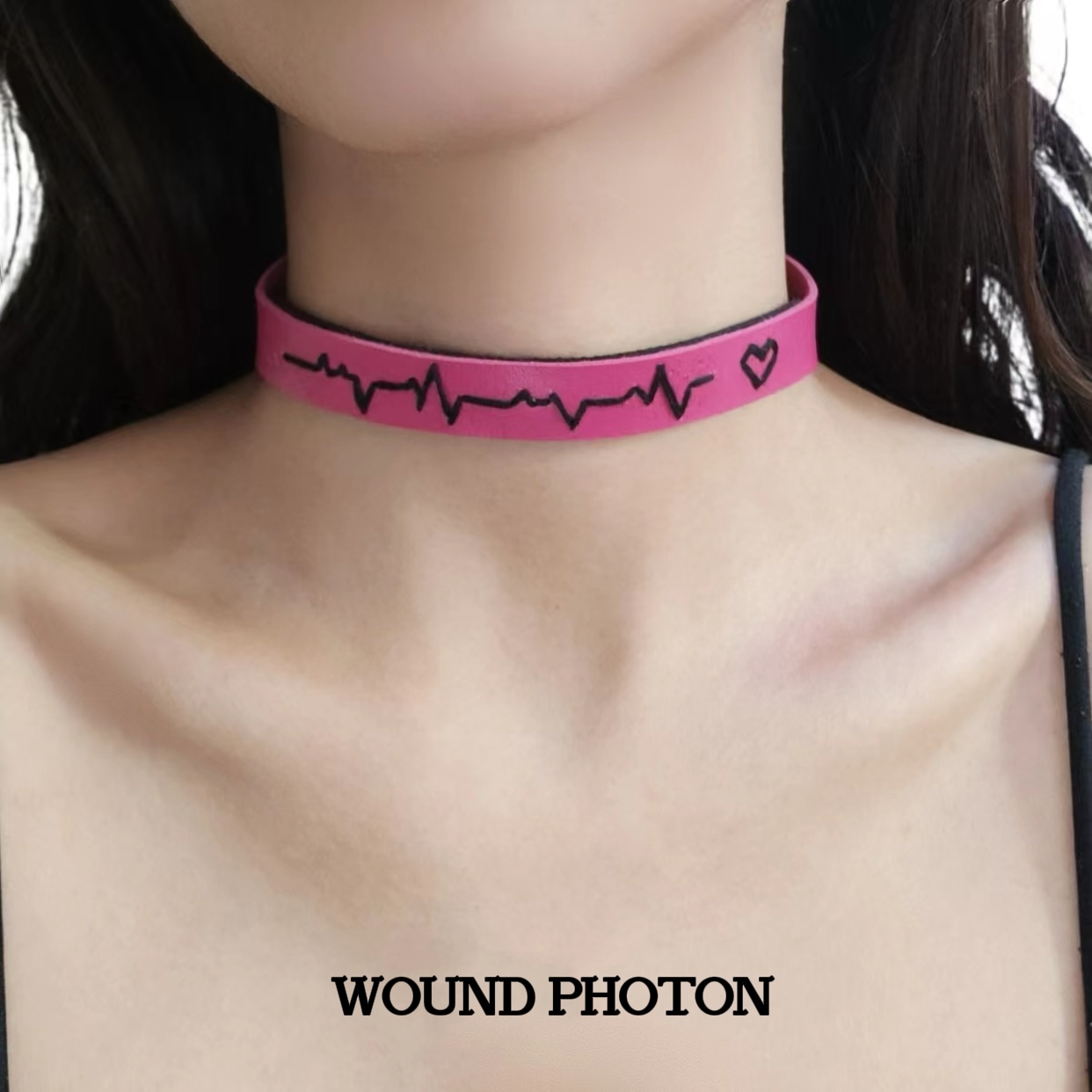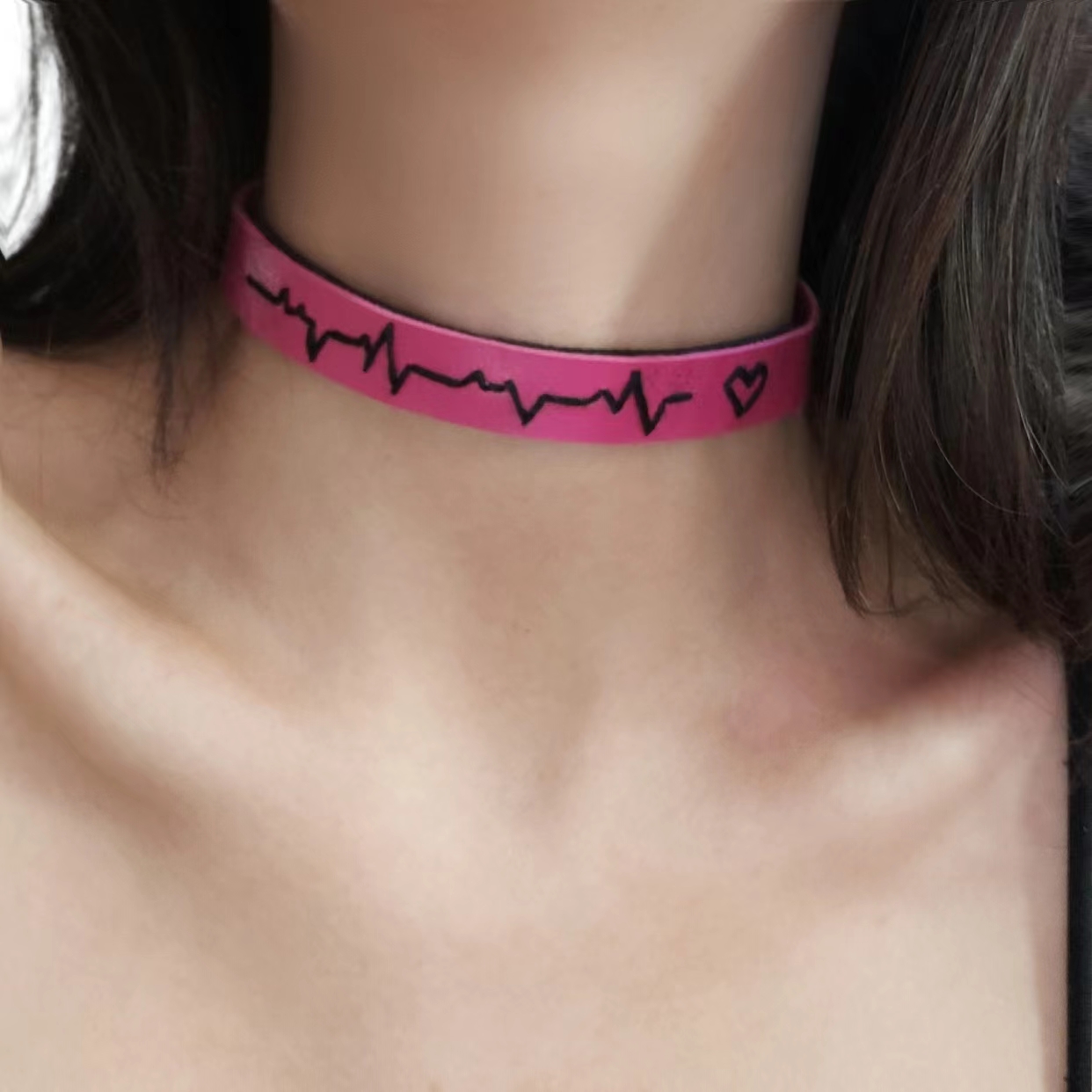 心动信号创口光合原创小众心电图手缝choker心跳情侣心形玫红项圈