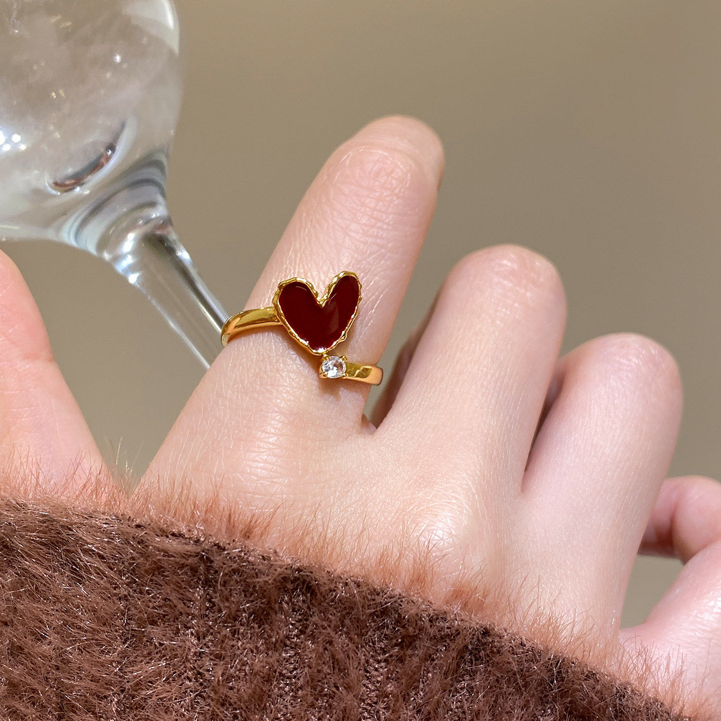 新年红色爱心仿锆石戒指女轻奢高级感食指戒小众设计巨好看指环