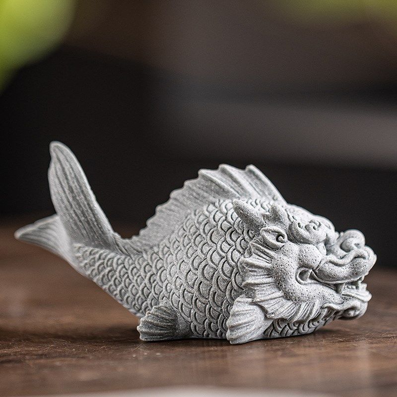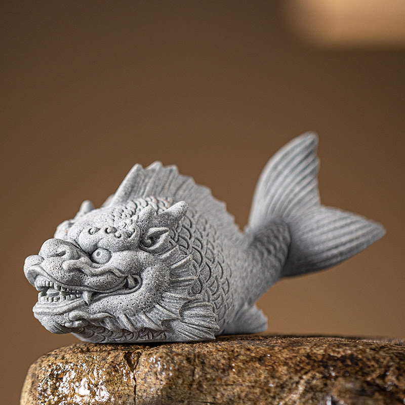 中式鱼化龙茶宠茶玩摆件青砂石创意龙鱼礼物桌面装饰鱼缸盆栽造景