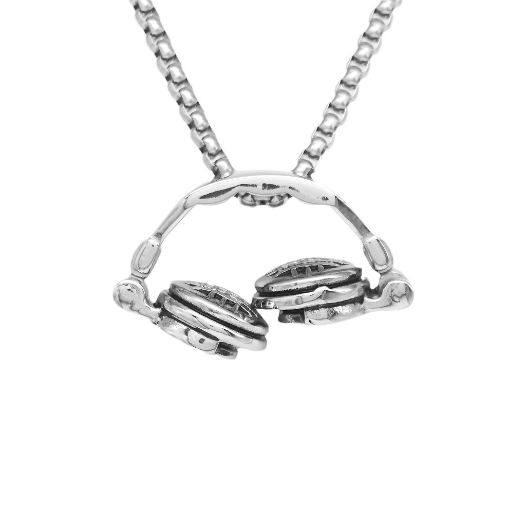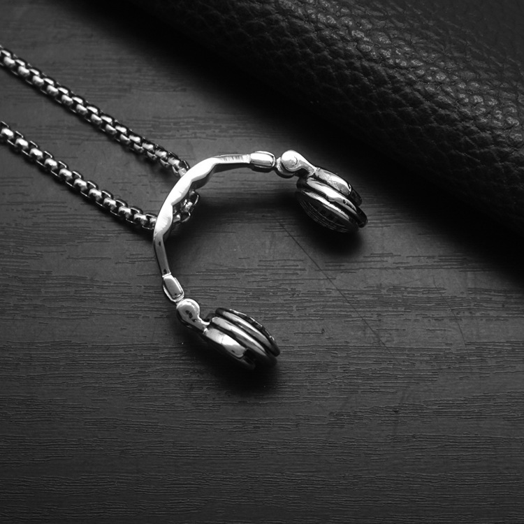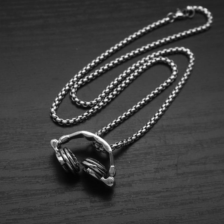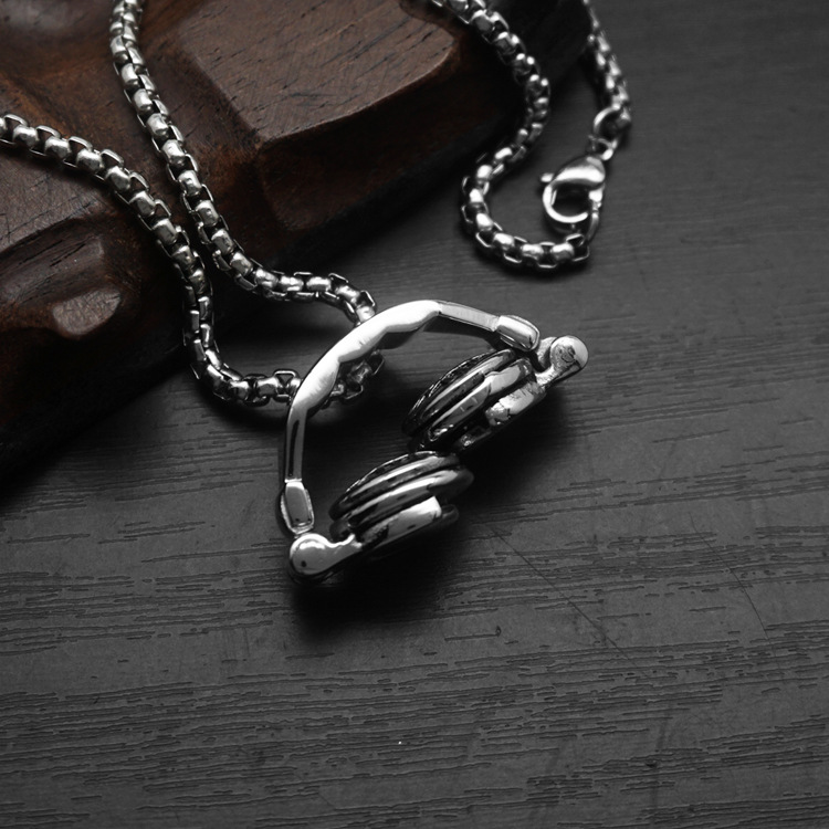 跨境朋克嘻哈不锈钢饰品铸造可折叠耳机吊坠潮人百搭钛钢项链男女