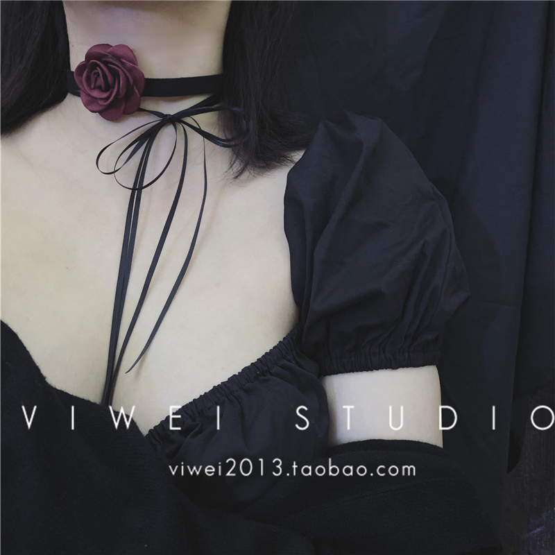 冷艳玫瑰 冷淡风ins系带蝴蝶结暗黑风绑带精致锁骨链项圈choker女