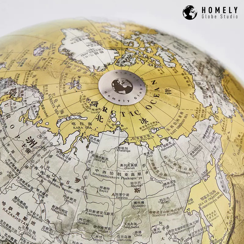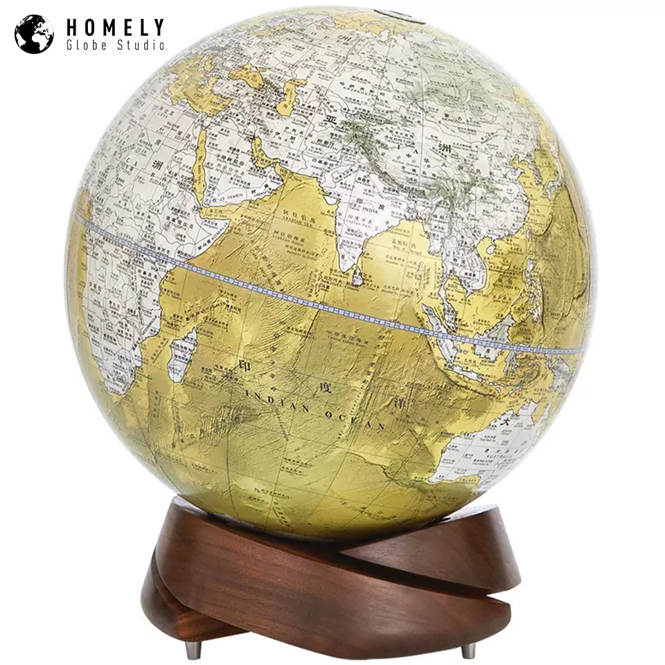 宏微地球客厅书房办公室家居摆件双语手工地球仪新居礼物黑胡桃木