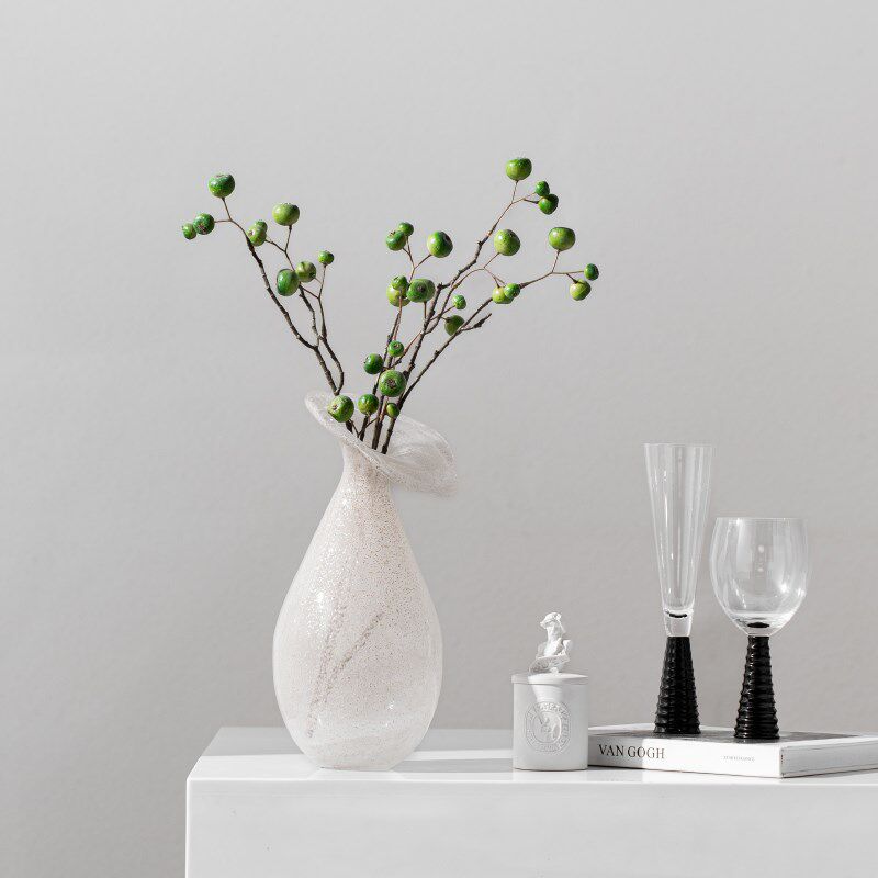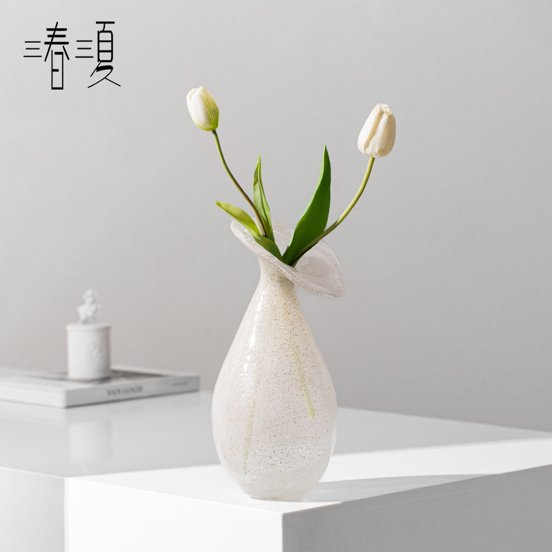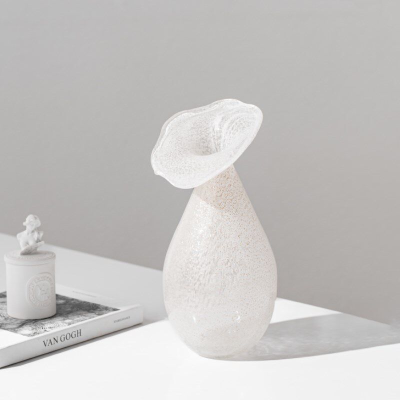 法式奶白色喇叭玻璃花瓶复古琉光内彩绘客厅酒店软装插花饰品摆件