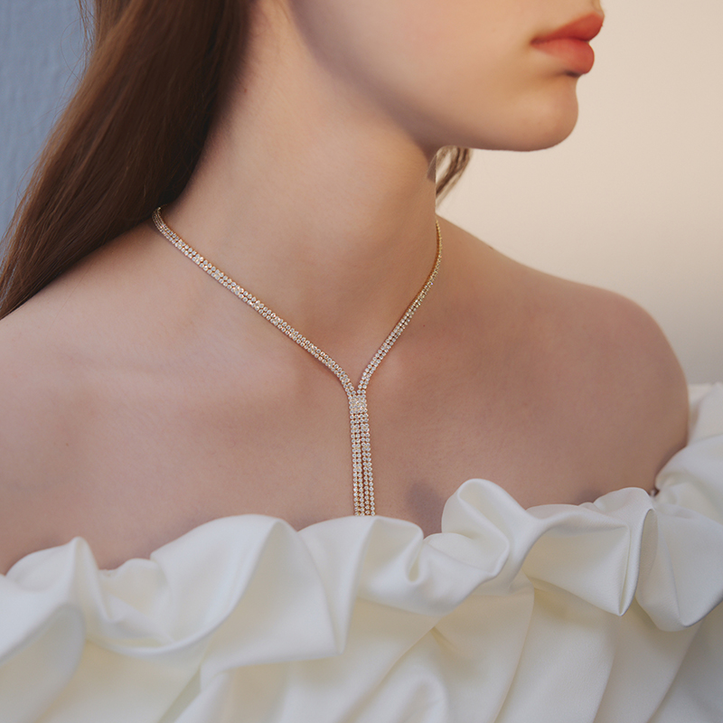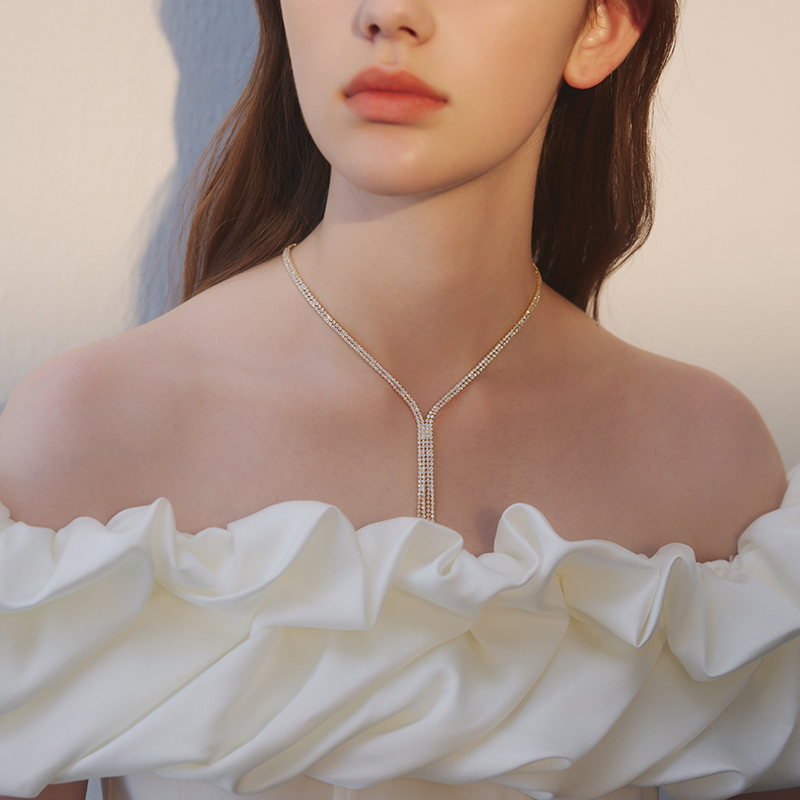 苏心年会晚宴满钻超闪流苏项链轻奢小众设计感胸链高级锁骨链颈链