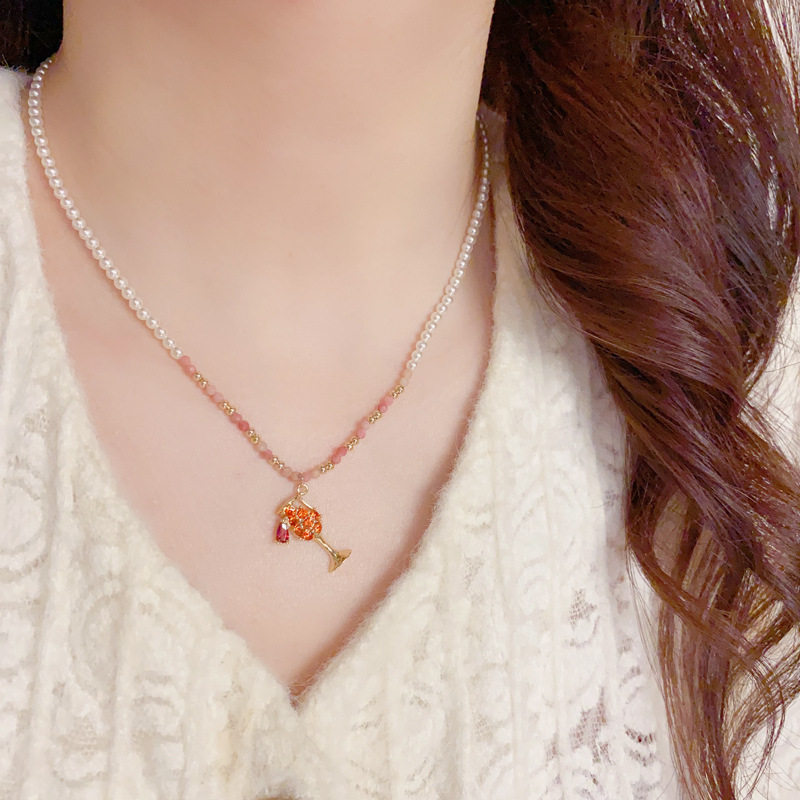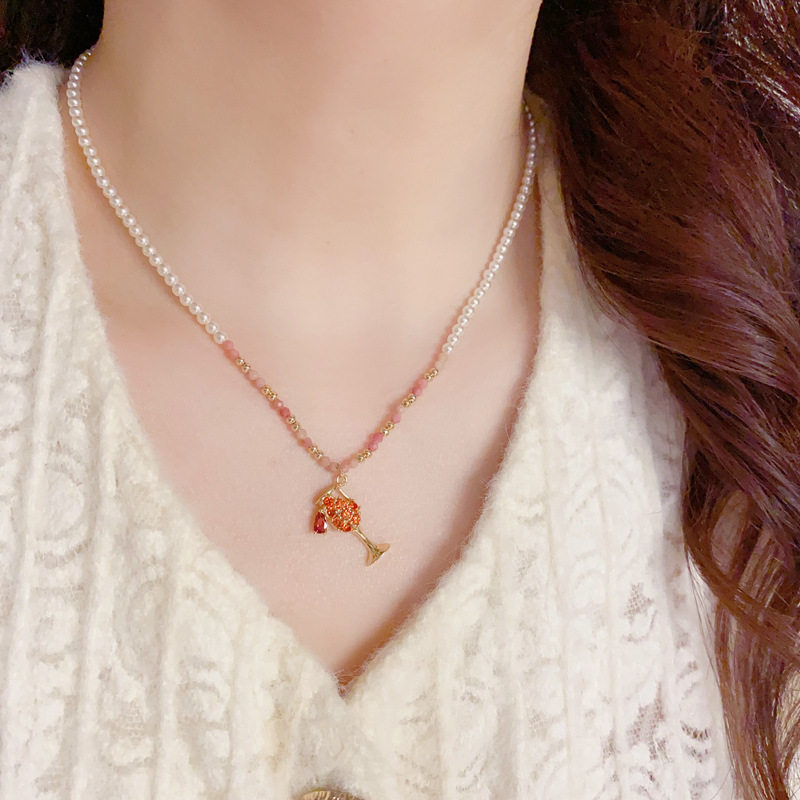 春季新款时尚温柔百搭玻璃珠满钻酒杯吊坠项链个性小众设计感颈链