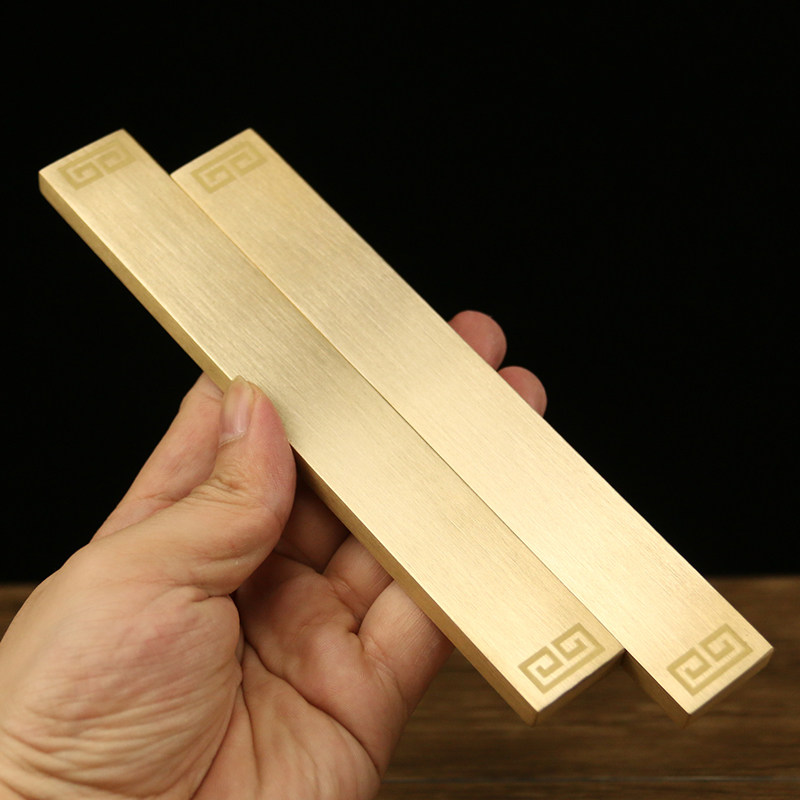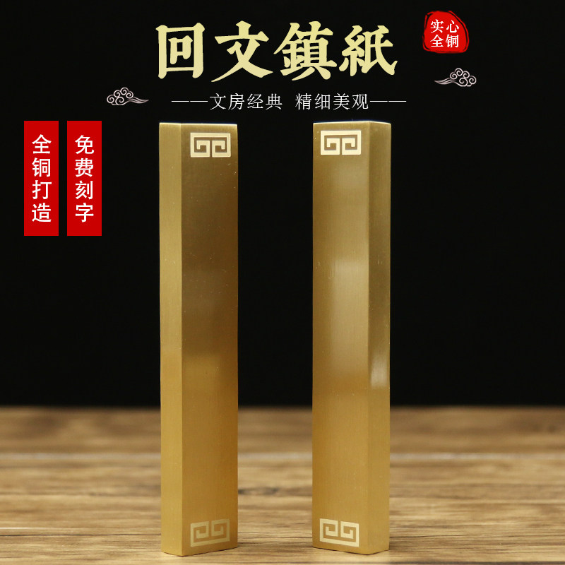 中国风黄铜镇纸铜简约创意文房用品镇尺学生书法压纸金属笔架小