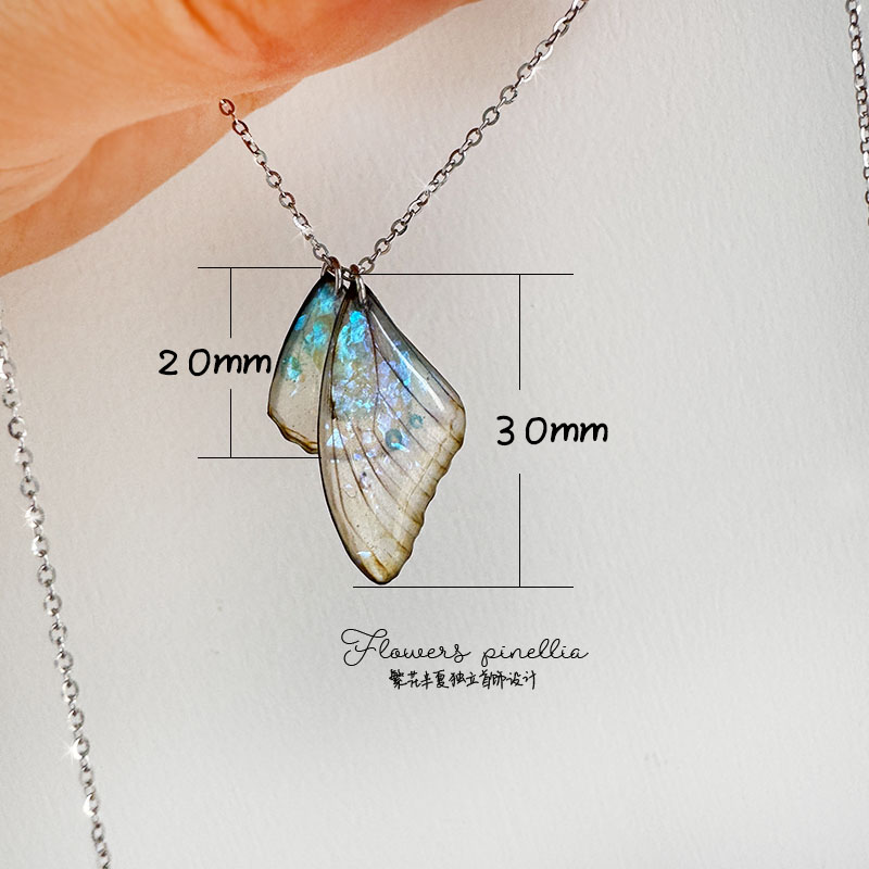 原创仿月光石蝴蝶翅膀项链S925纯银小众生日礼物女锁骨链新款