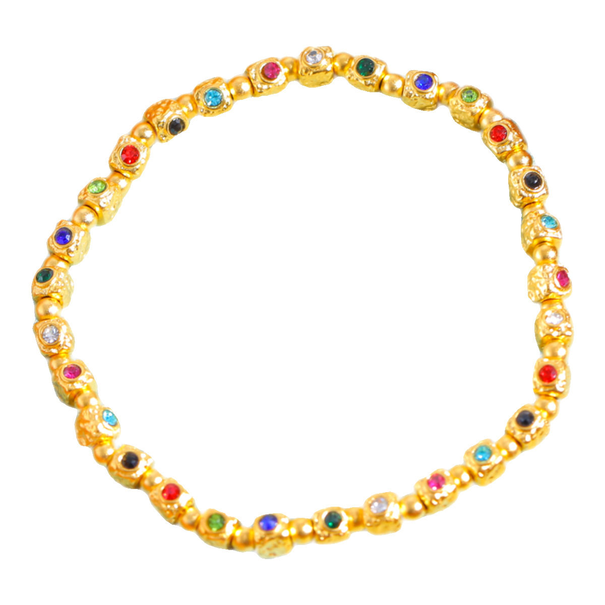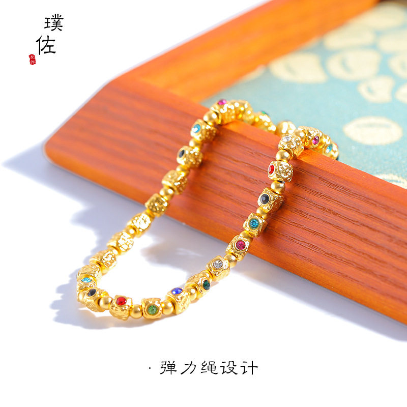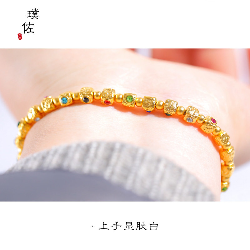 久不掉色越南沙金磨砂锤纹方糖镶嵌彩虹手链捶打纹散珠diy黄金女