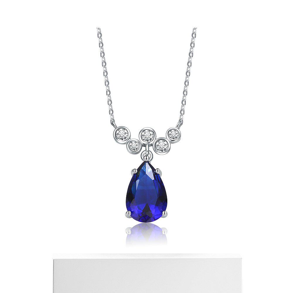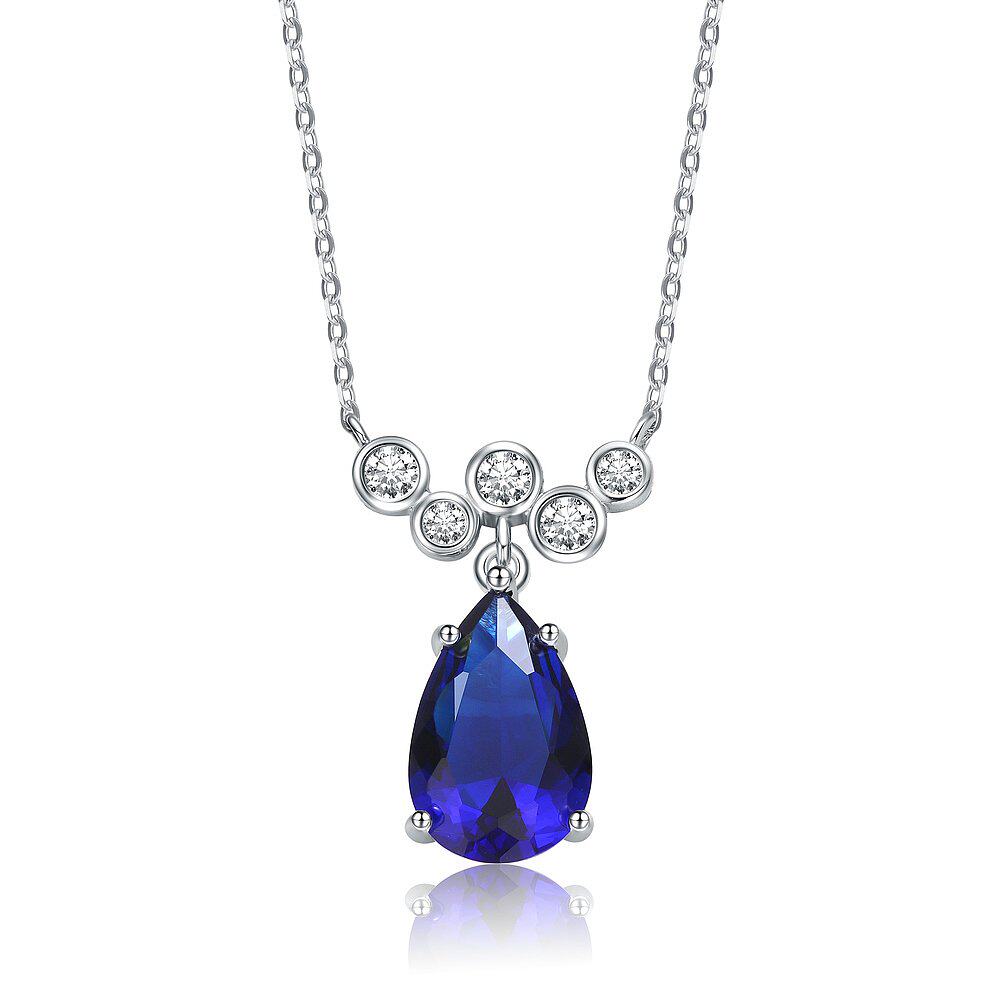 genevive14k 镀金纯银配蓝色蓝宝石和钻石方晶锆石泡泡雪佛龙雨滴