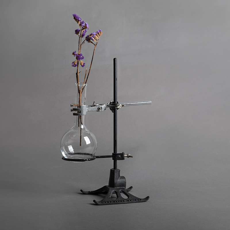 工业风铸铁金属实验室花架烧瓶型花器玻璃花瓶摆件装饰手冲咖啡架