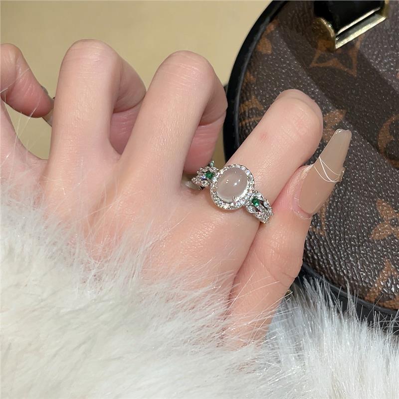 法式仿白玉髓戒指女轻奢高级感气质奢华食指戒精致小众设计感指环