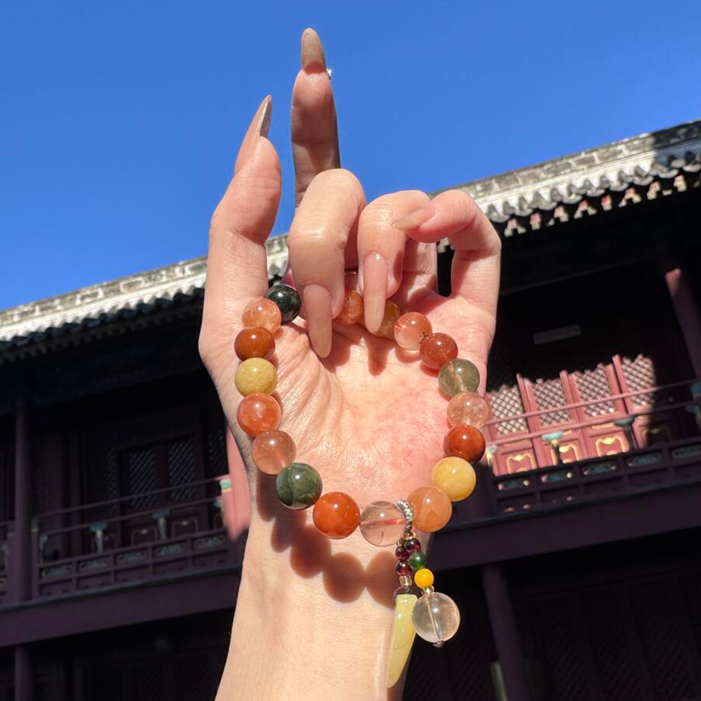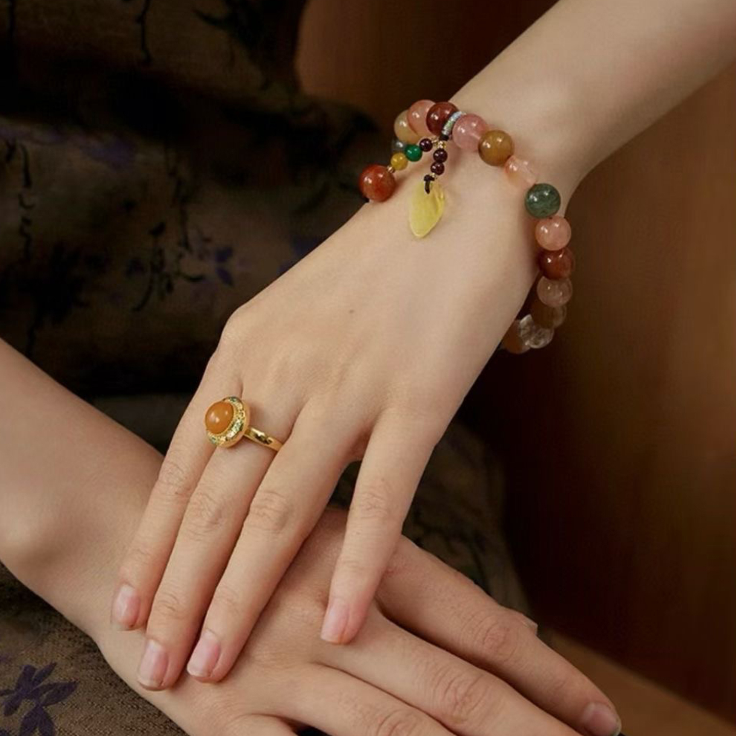 寓意很好!新中式国风五福多宝手串 多彩水晶蜜蜡手链 送女友礼物