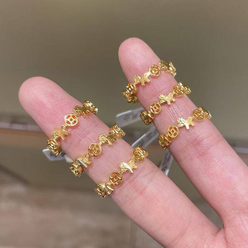 "马上有钱"金色木马铜钱戒指女独特小众设计指环轻奢高级感食指戒