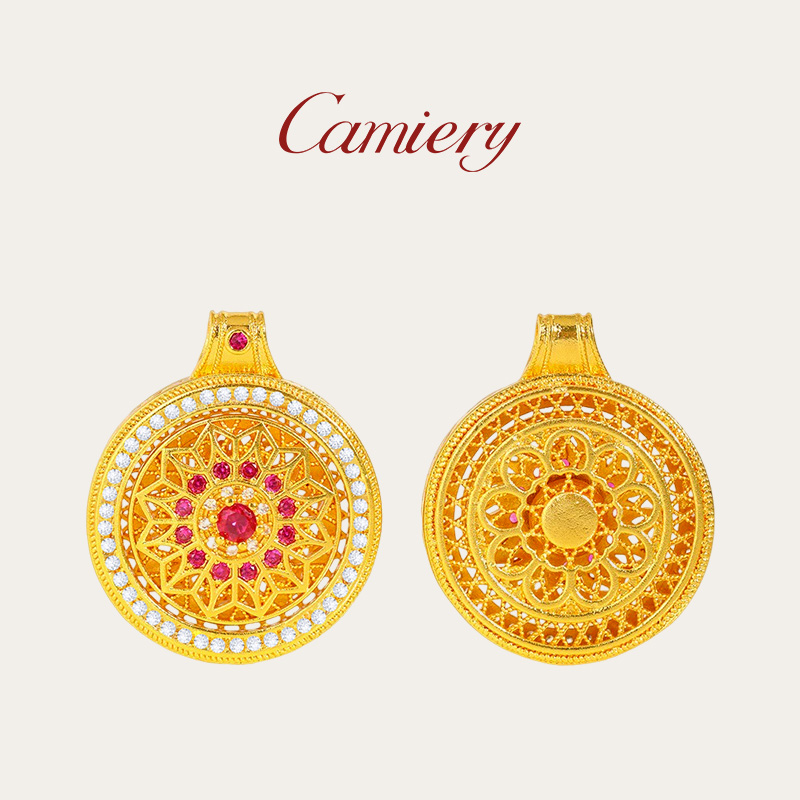 CAMIERY【新店福利】镀24K真金 红色玫瑰花窗项链 气质百搭保色