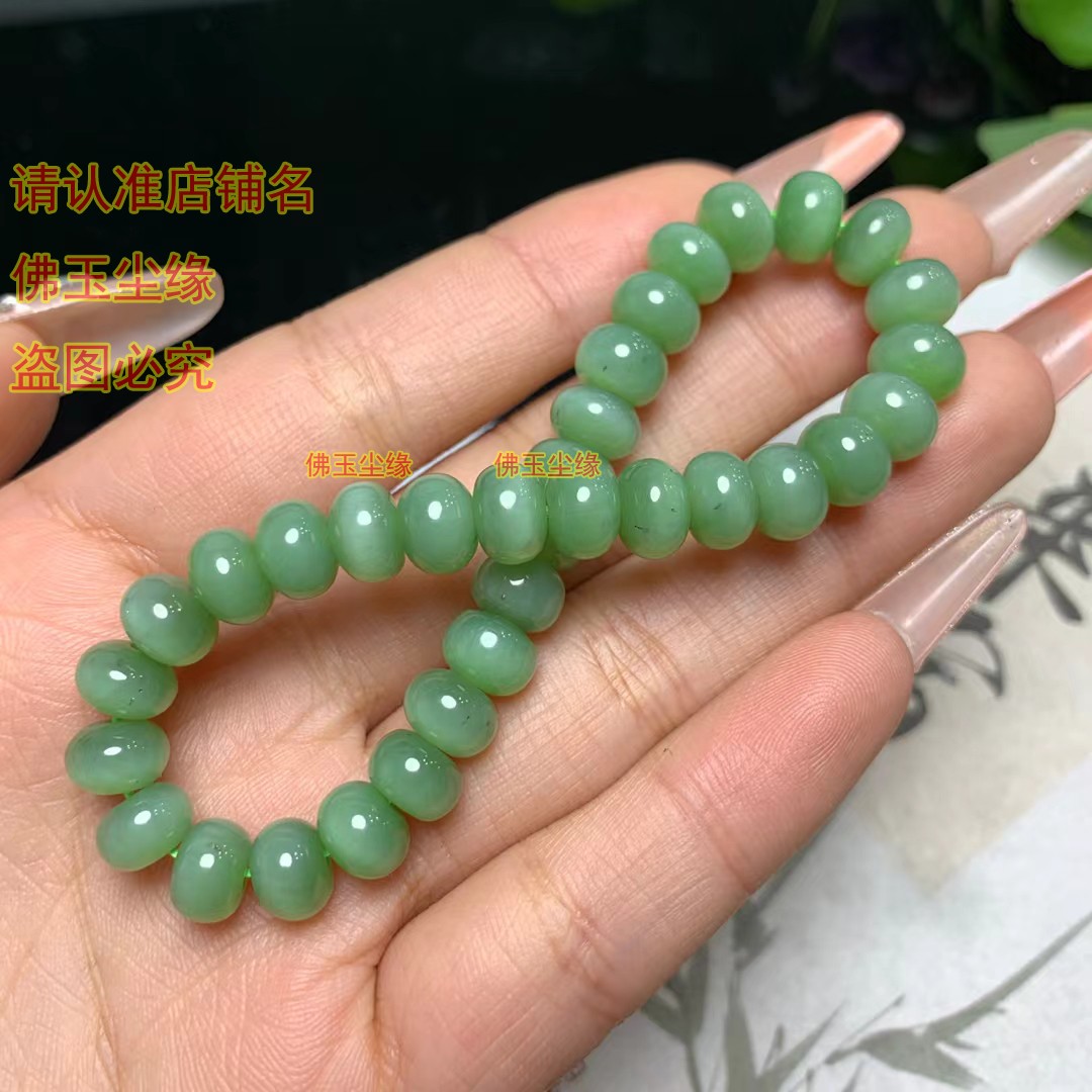 天然珠宝玉石新疆和田玉碧玉猫眼手链手串算珠珠串女款式手环满绿