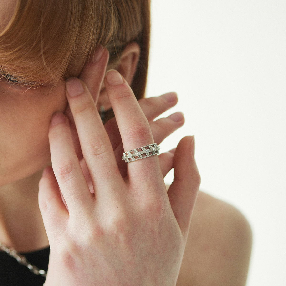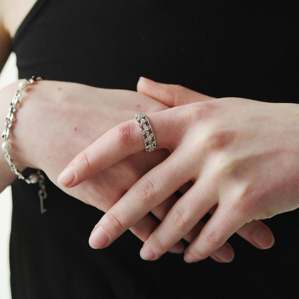 Mouhooland/暮后之地刻骨系列镂空花镜戒指925银情侣款食指戒小众