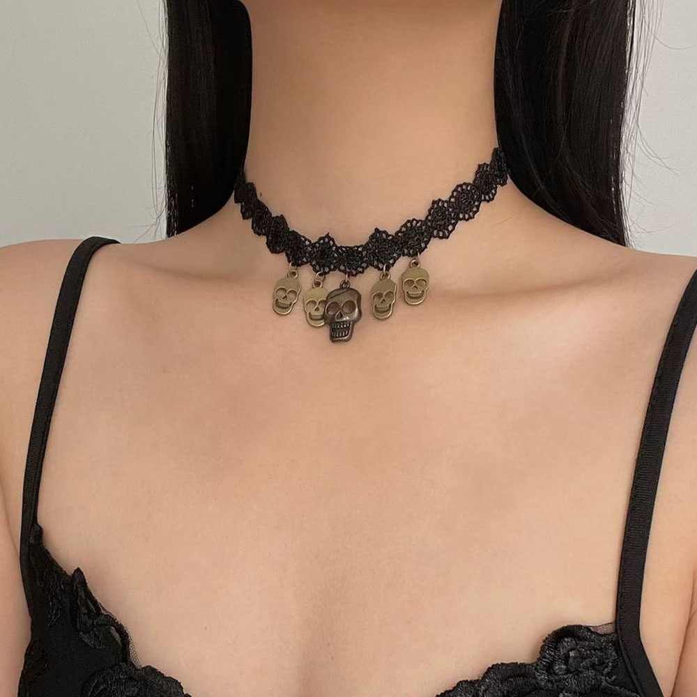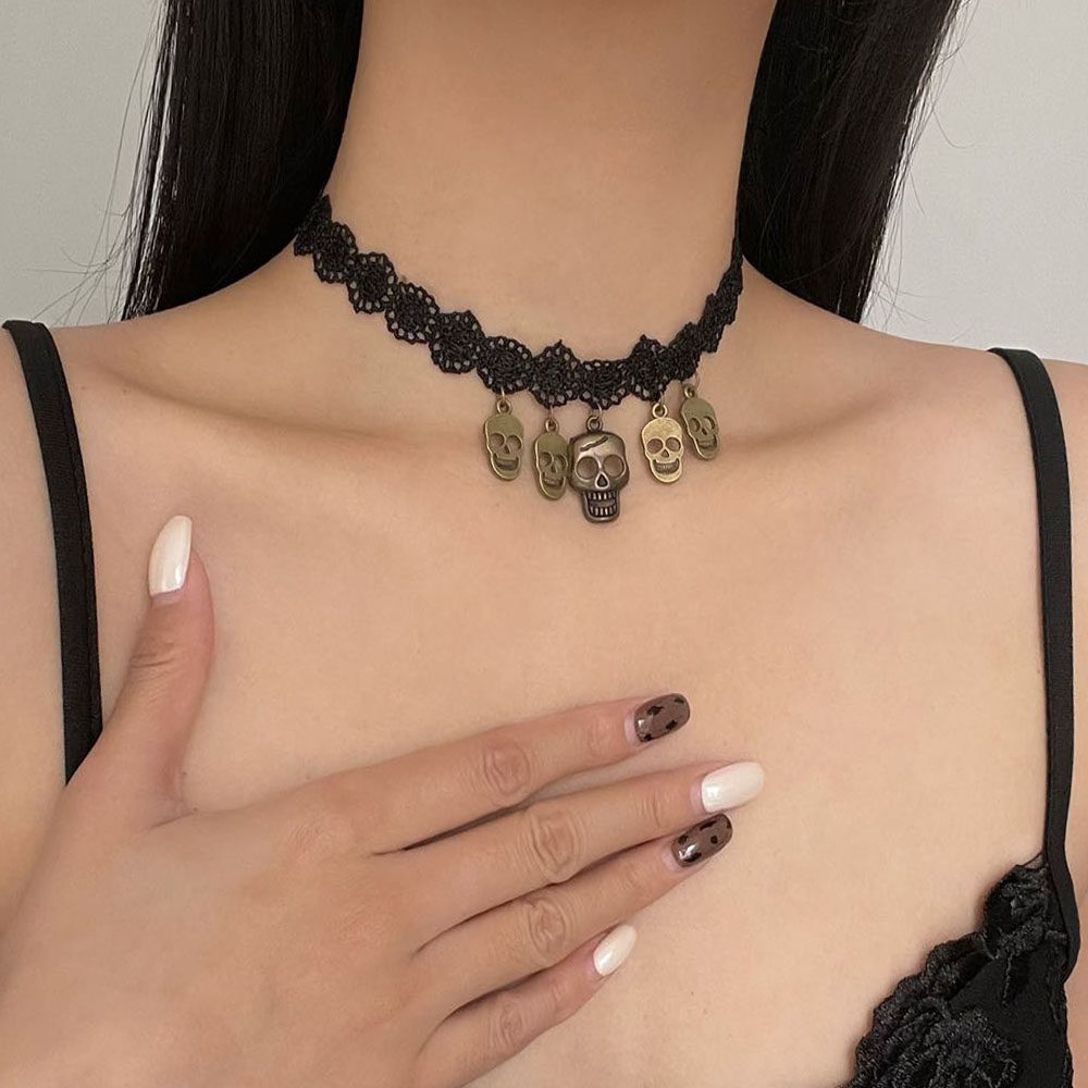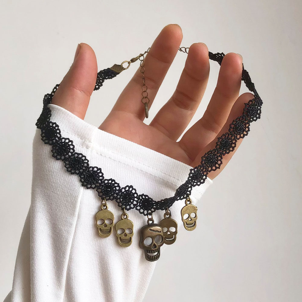 当前位置:首页>商品详情>黑色蕾丝颈带骷髅头吊坠项链女万圣节创意夸张ins锁骨链个性颈链
