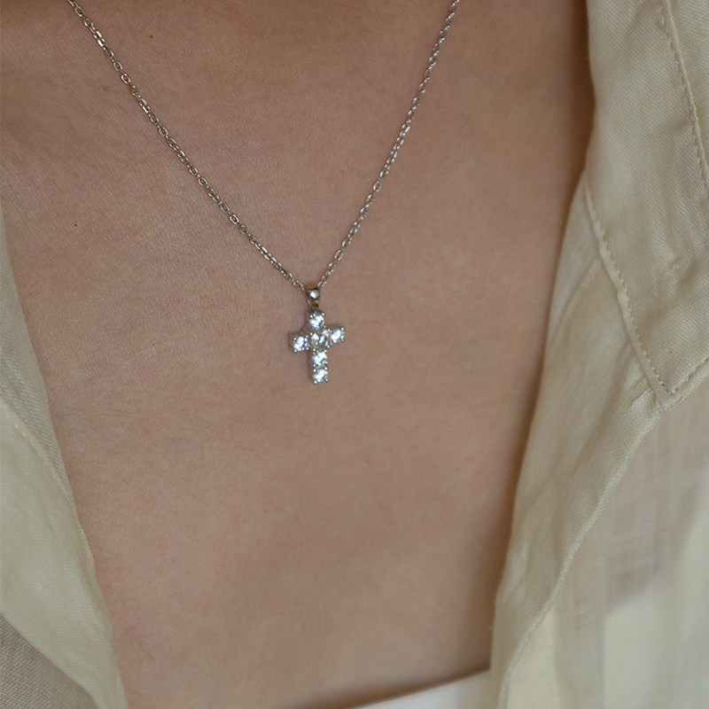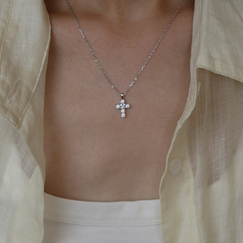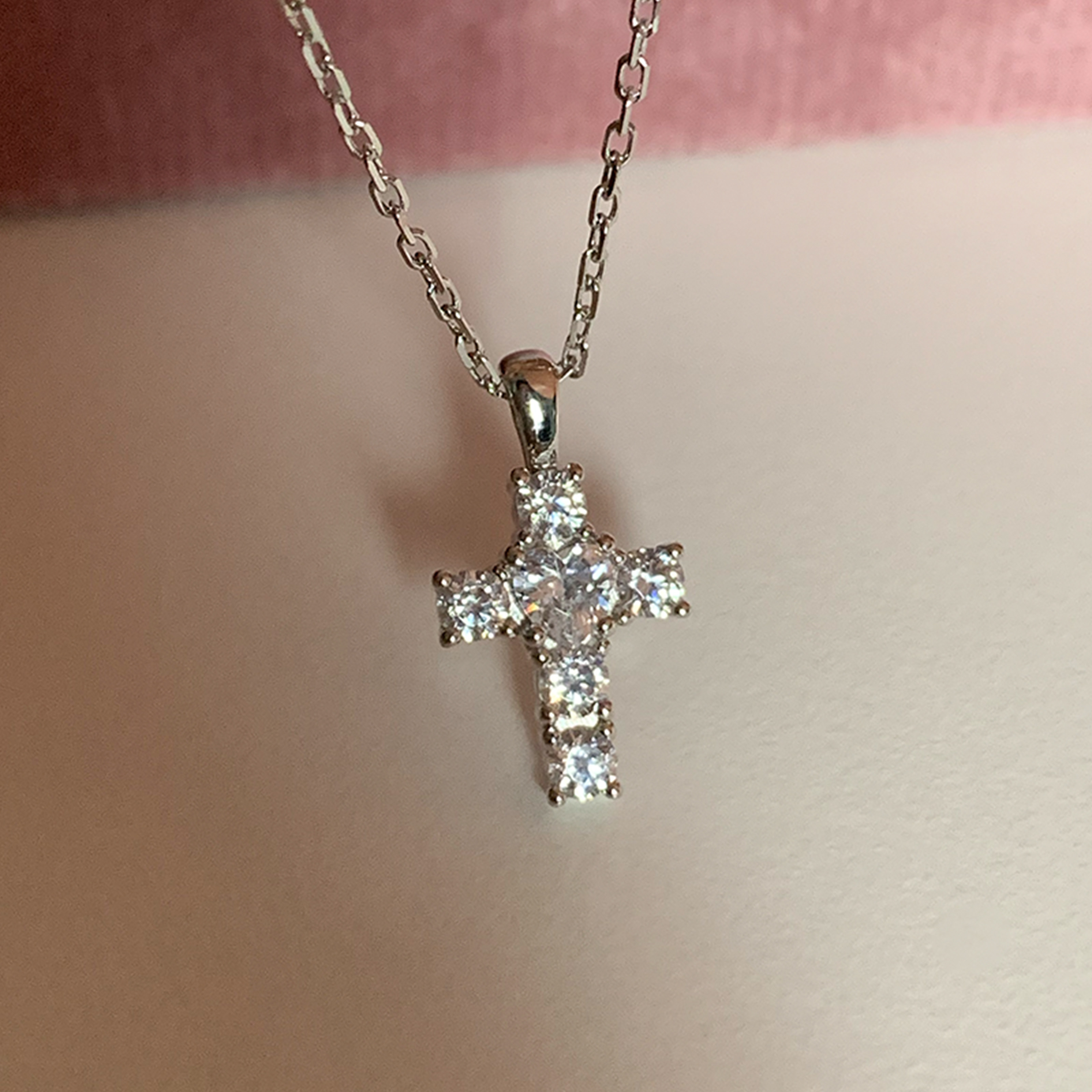 LLab s925纯银3A火彩锆石十字架镶满钻吊坠项链