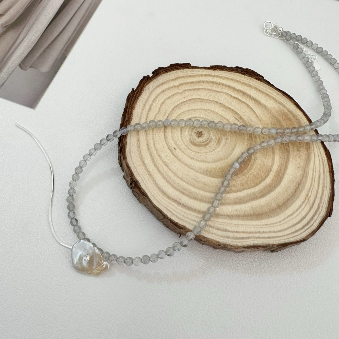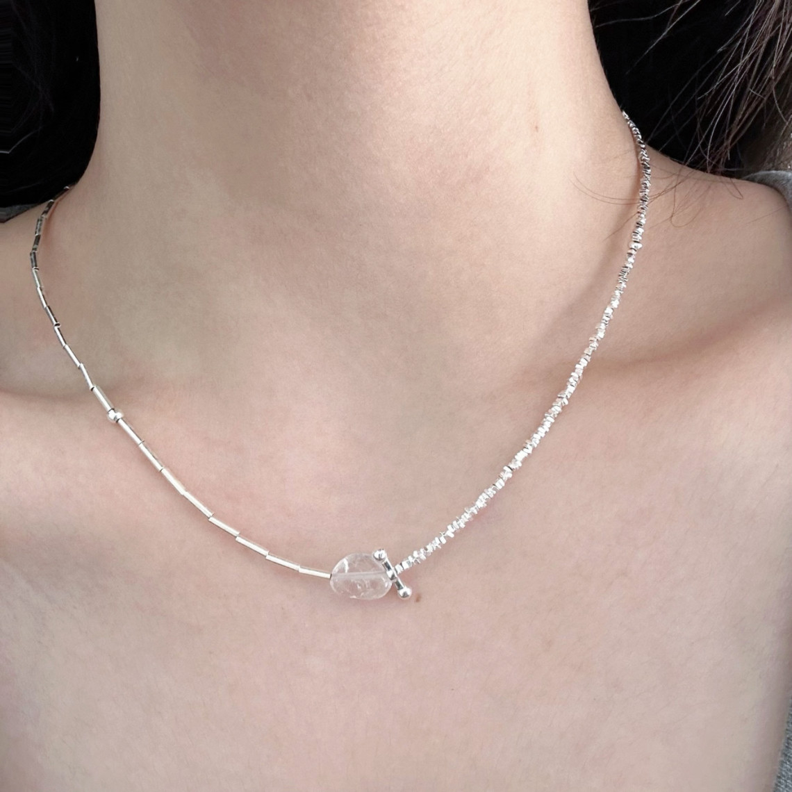 法式花瓣水滴项链可调节拼接碎银子轻奢小众设计高级感饰品锁骨链