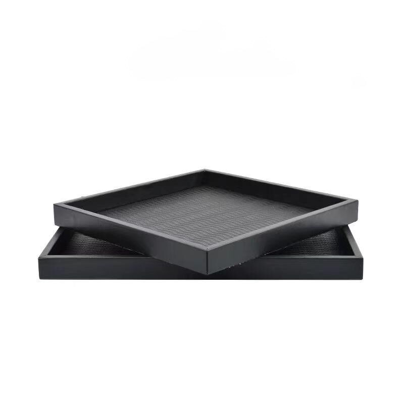 现代简约黑色皮革托盘样板间客厅茶几收纳盘几何置物盘装饰品摆件