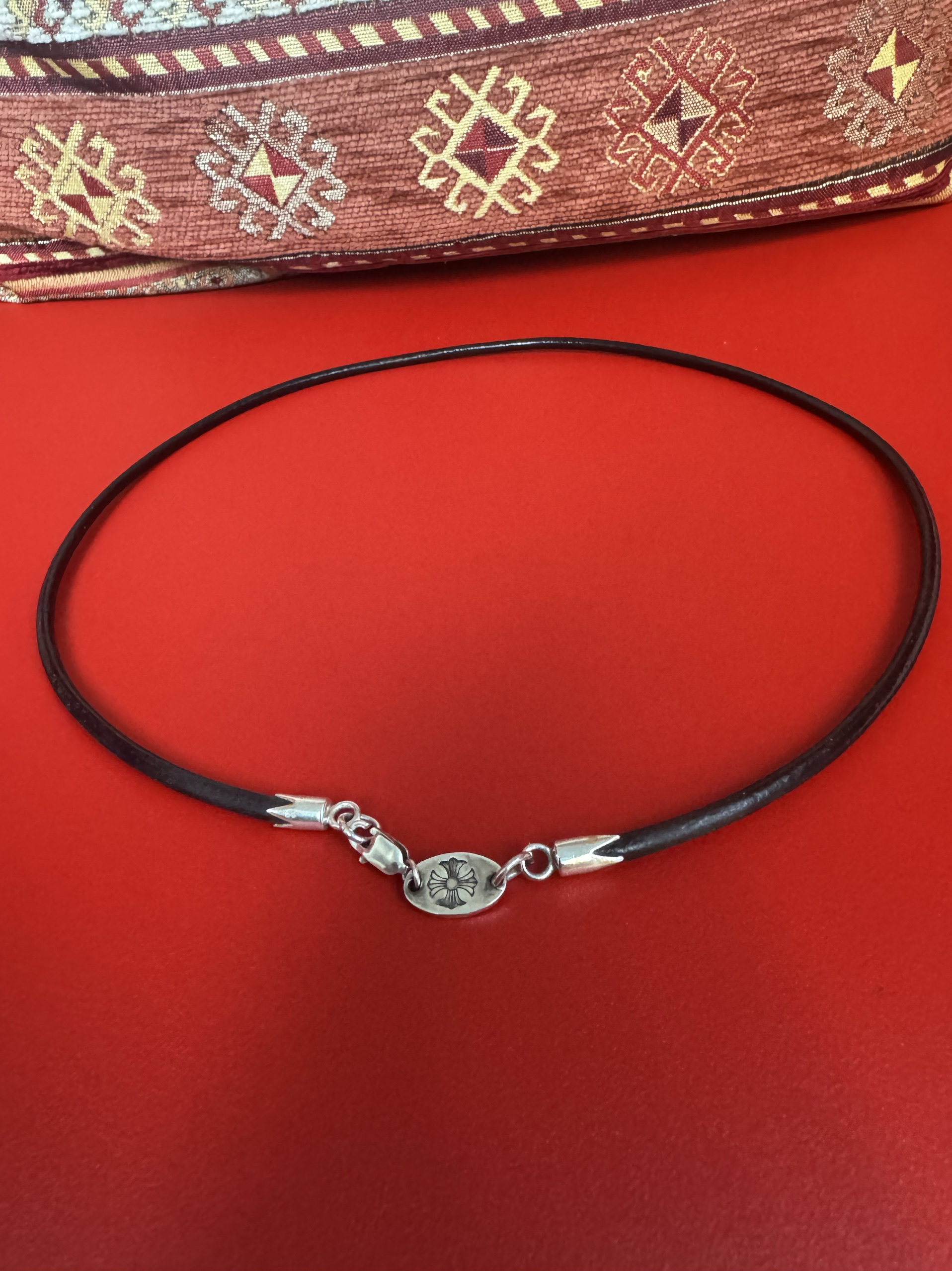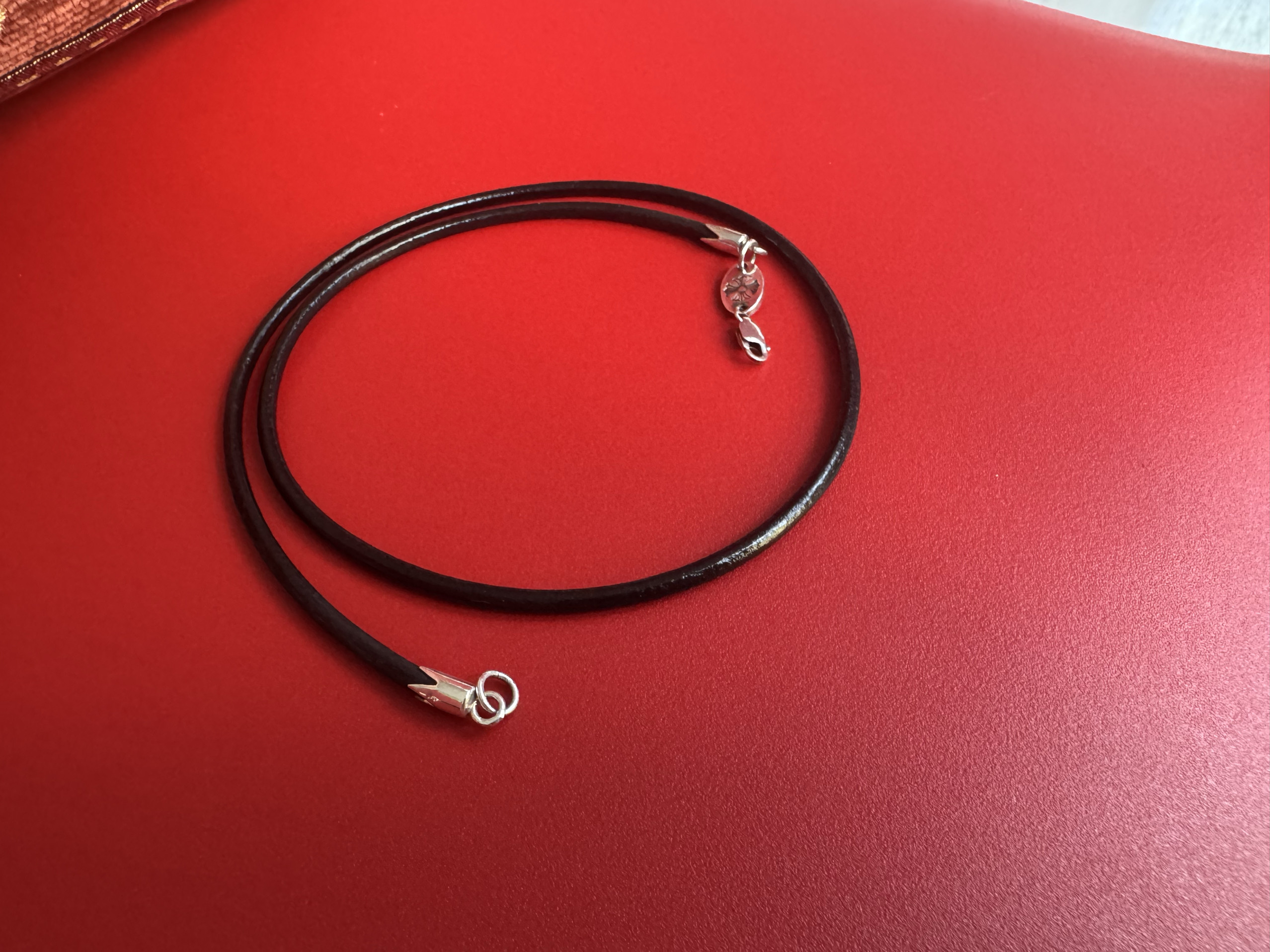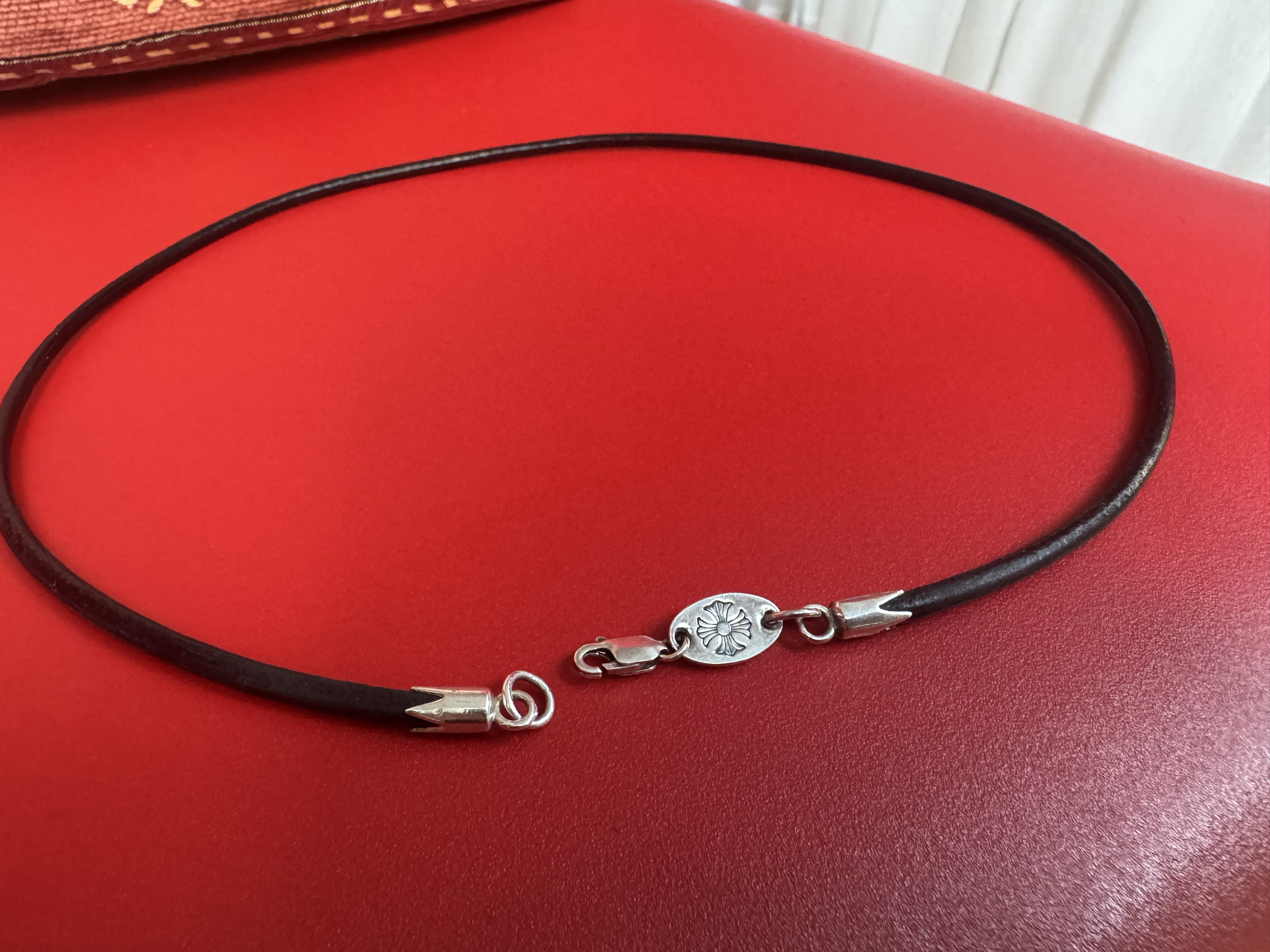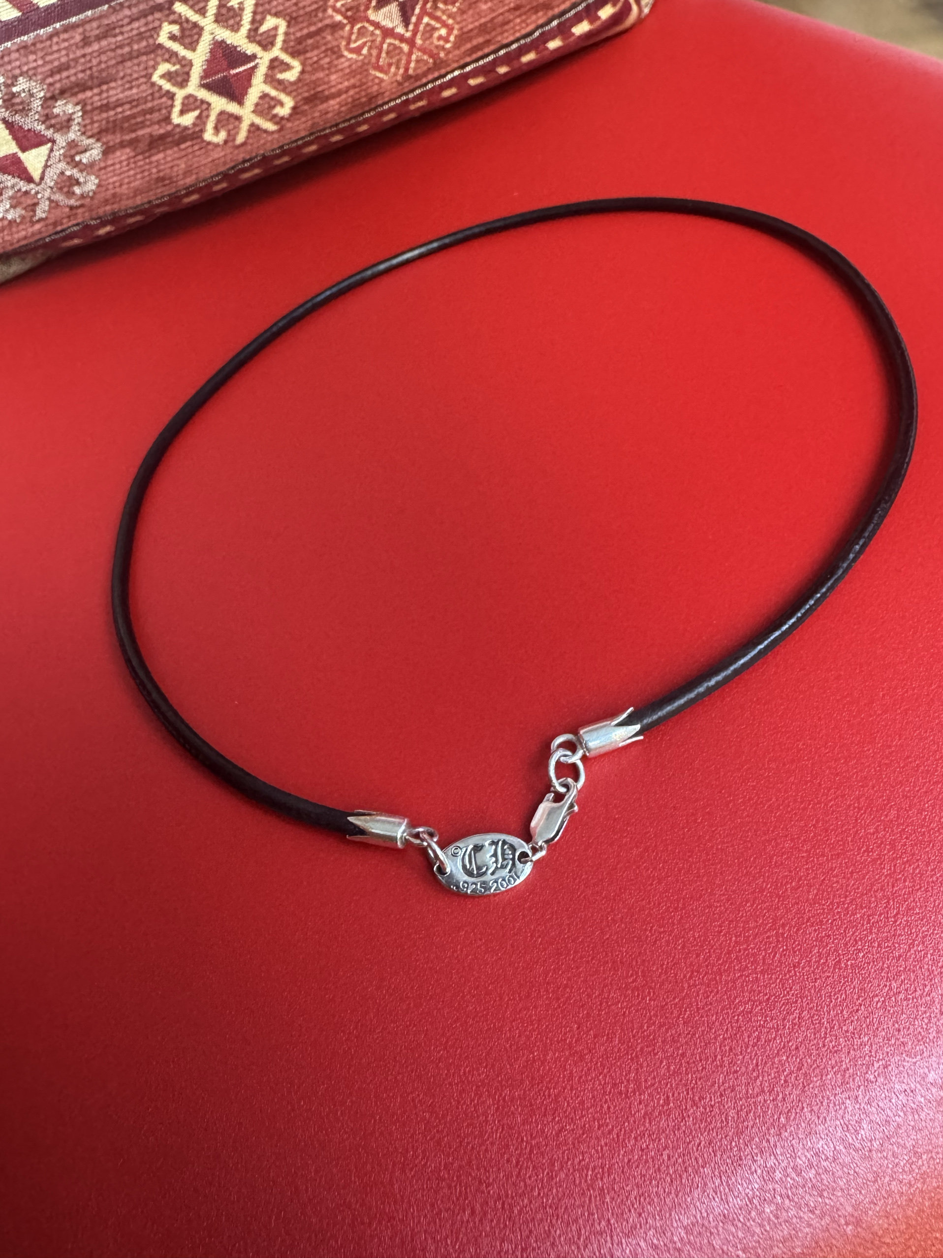 925纯银黑色3mm牛皮绳十字架个性朋克时尚男女款狼牙金银吊坠挂绳