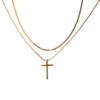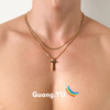 GuangYu金色双层叠戴十字架项链男女轻奢小众钛钢简约百搭锁骨链