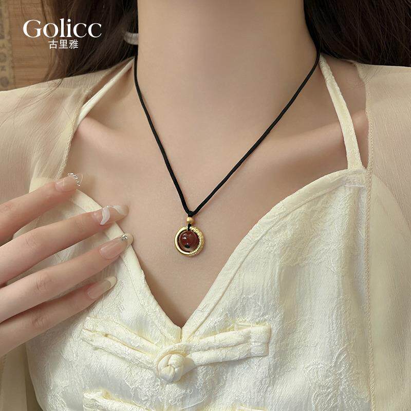 2024年新品红色项链项链女生编织绳毛衣链轻奢小众设计高级感饰品