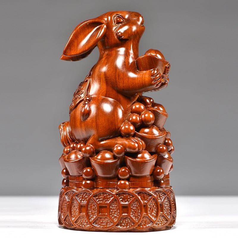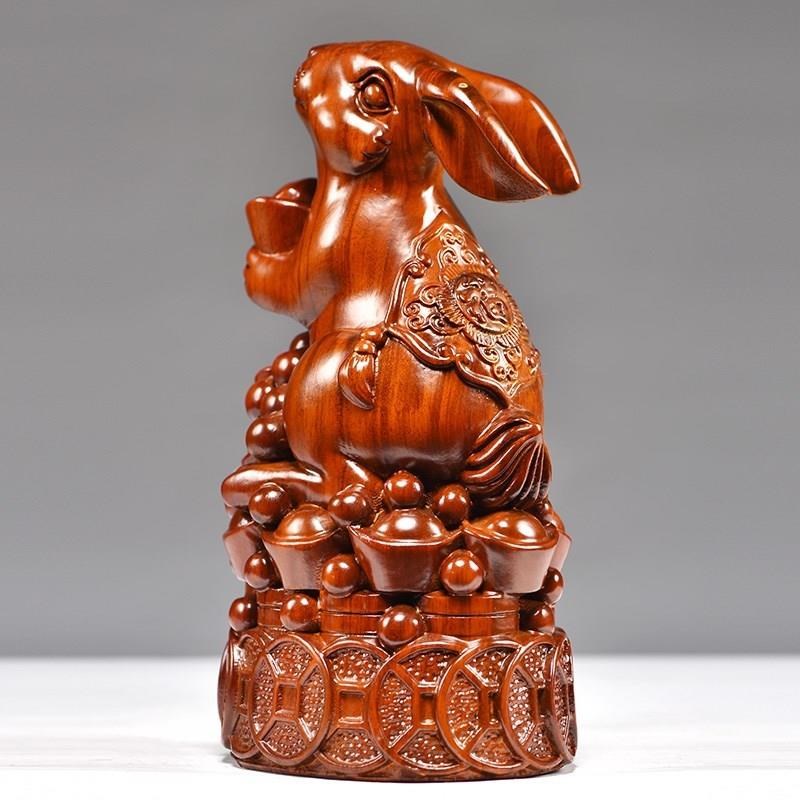 现货速发花梨木雕兔子摆件实木十二生肖动物雕刻家居客厅装饰红木