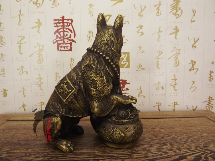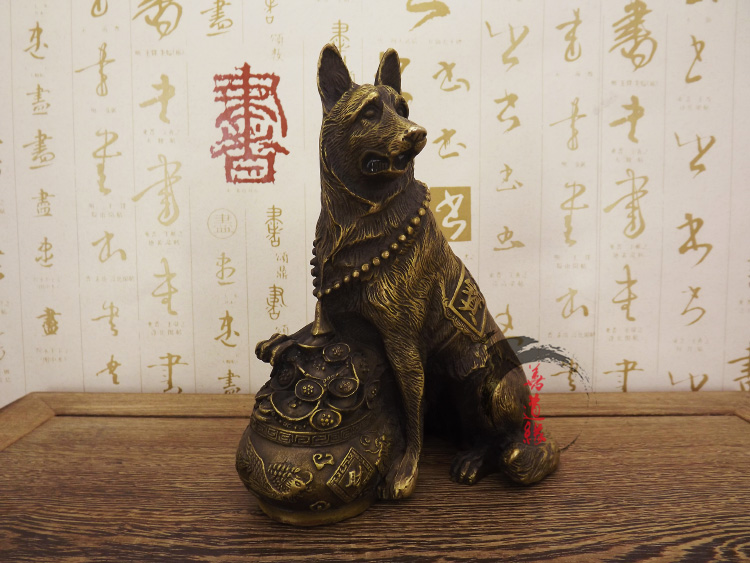纯铜狗铜聚宝盆狗招财狗生肖狗黄铜狼狗工艺品客厅复古装饰品摆件