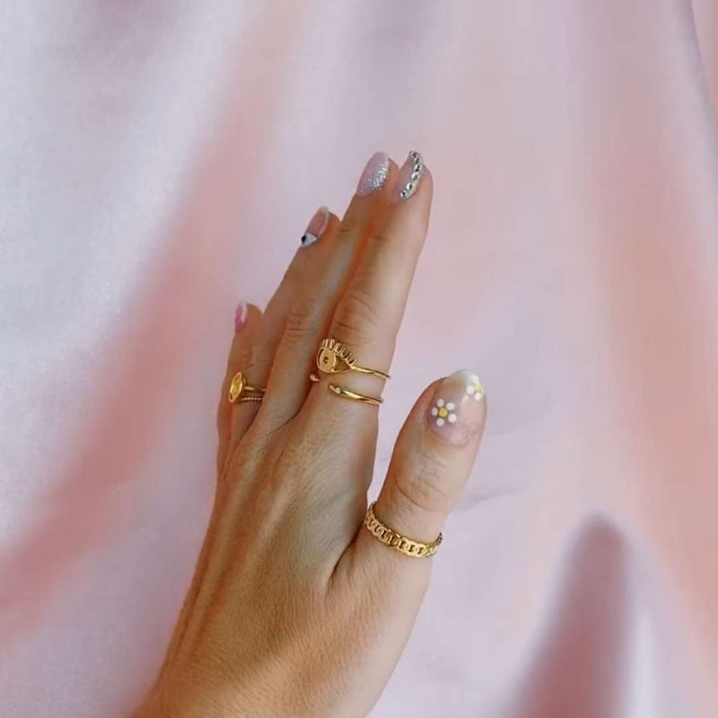 欧美时尚个性新款链条几何INS高级设计感小众戒指指环中指食指女