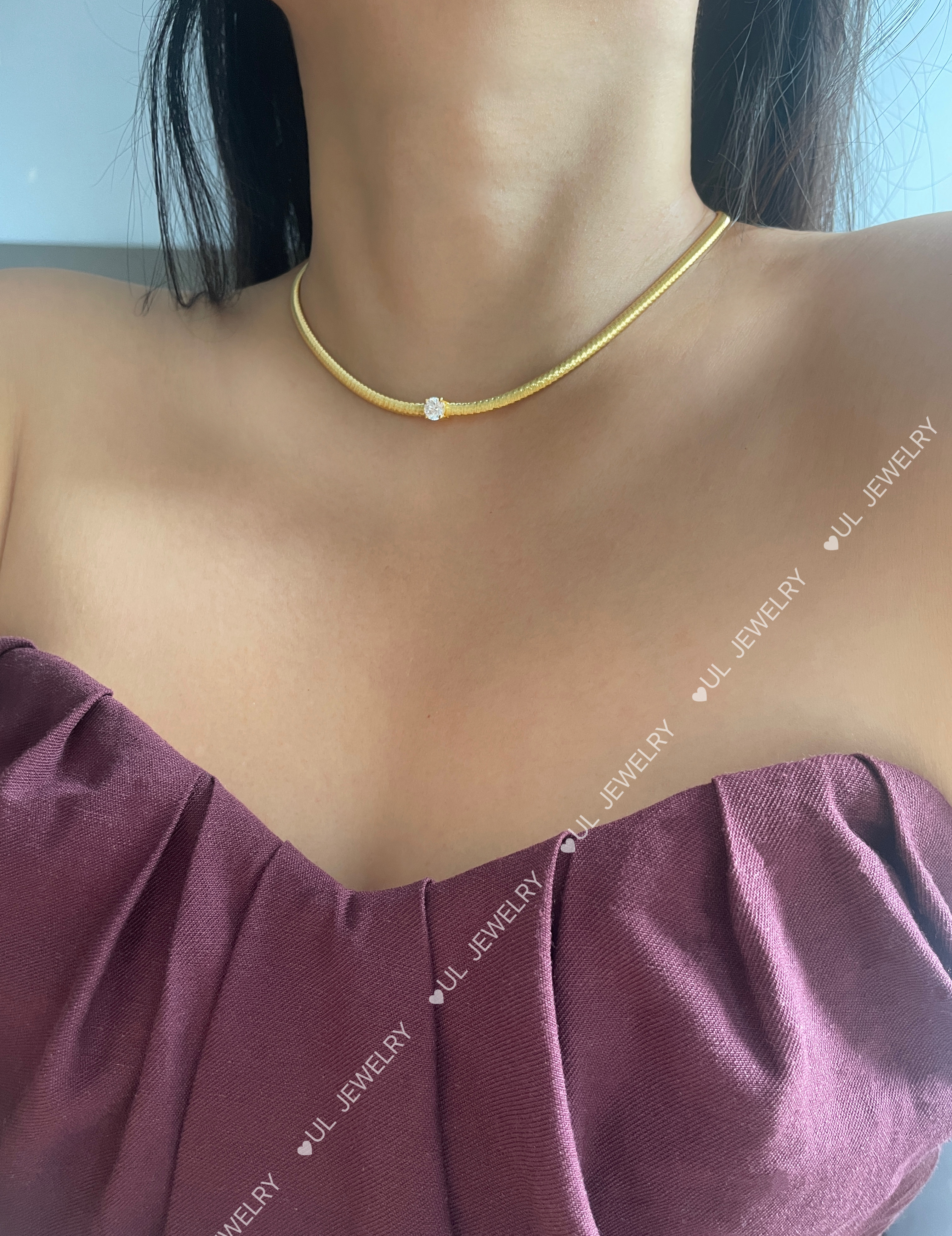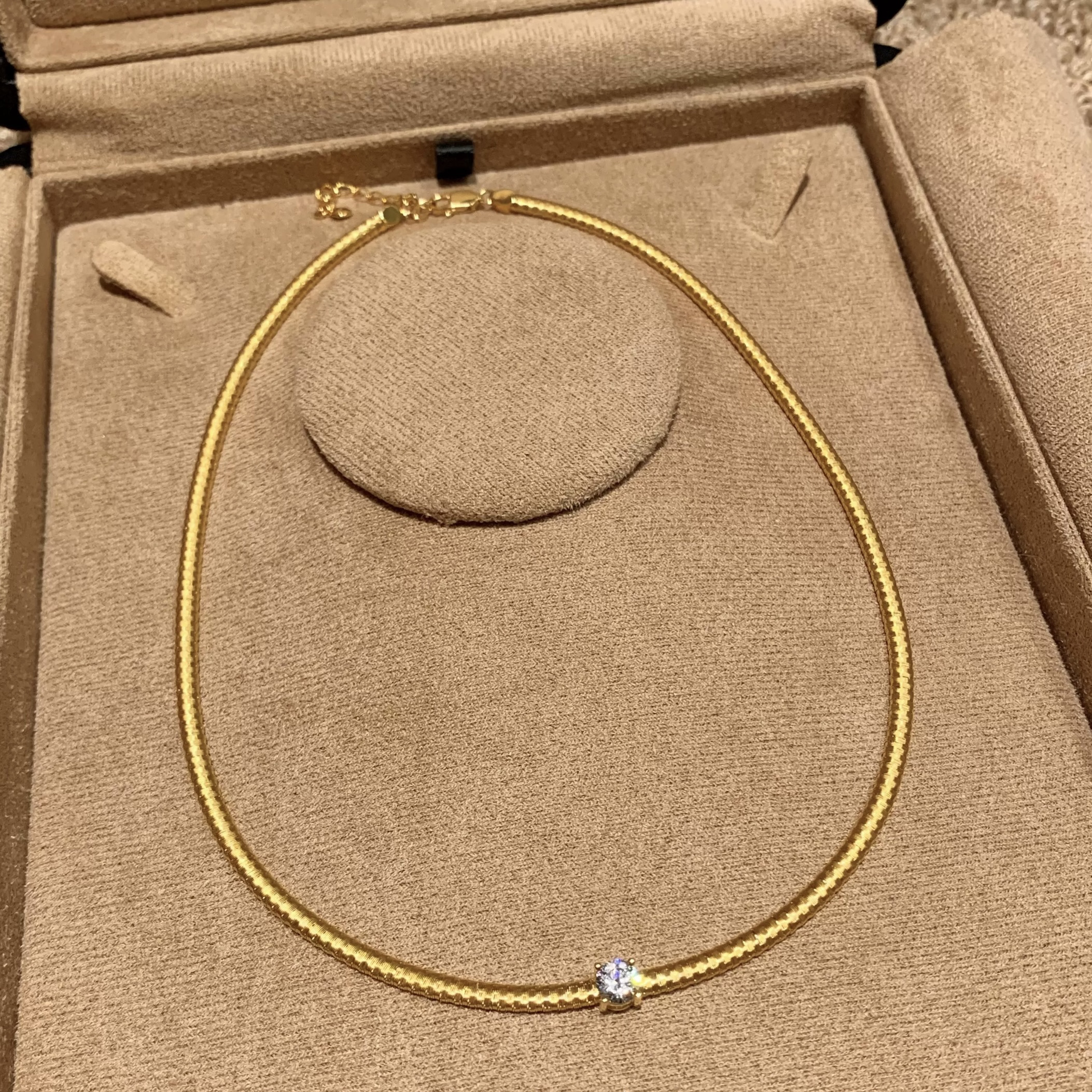 意大利金弦线925纯银项链镀金绕丝工艺choker项圈圆钻爪镶蛇骨链