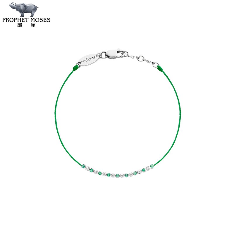 七夕redline/红绳女士2023新款0.12克拉圆形钻石祖母绿金绳制手链