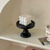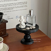 黑色复古木质香薰托盘摆件ins风玄关收纳盘置物盘圆形高脚展示盘
