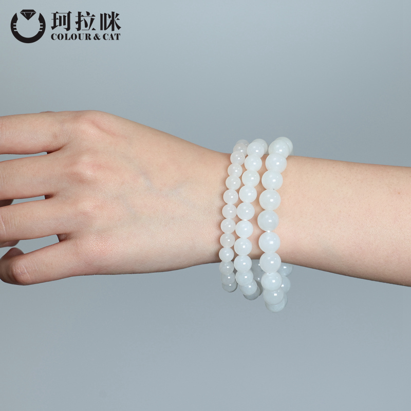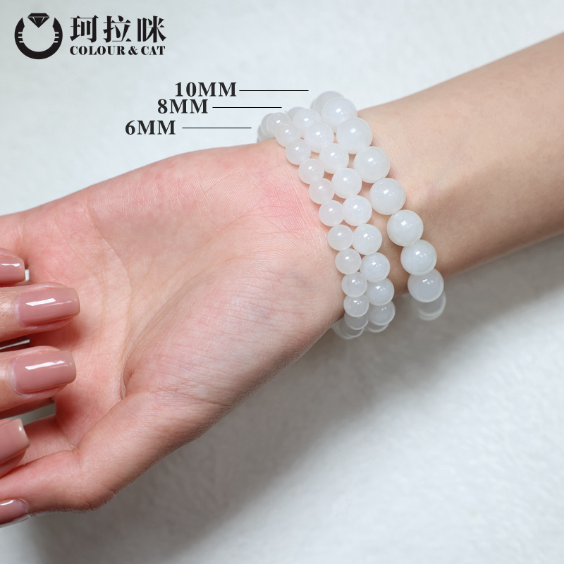 珂拉咪 天然和田玉羊脂玉手链 圆珠手串玉石白玉礼物礼物 精品款
