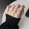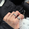 925纯银天然母贝壳白色爱心蝴蝶结戒指不规则小钻单叠戴开口简约