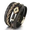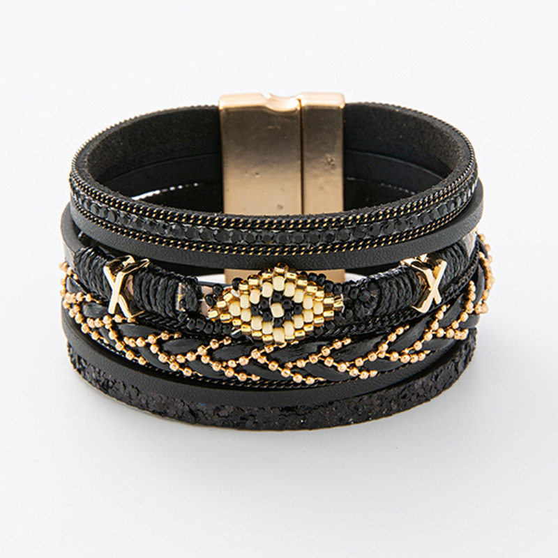 ZNFY欧美爆款合金磁铁扣手镯米珠编织皮革手链手镯波西米亚风