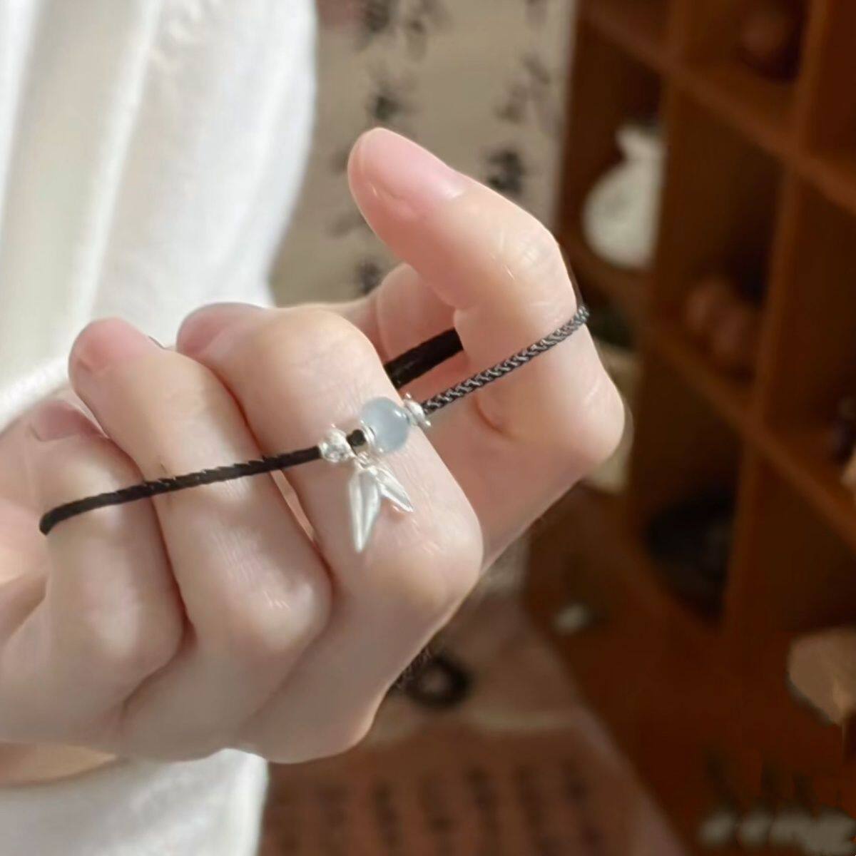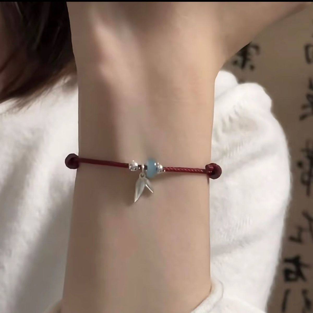 可爱蝴蝶竹叶红绳手链新中式手工编织手绳简约情侣闺蜜首饰小礼物